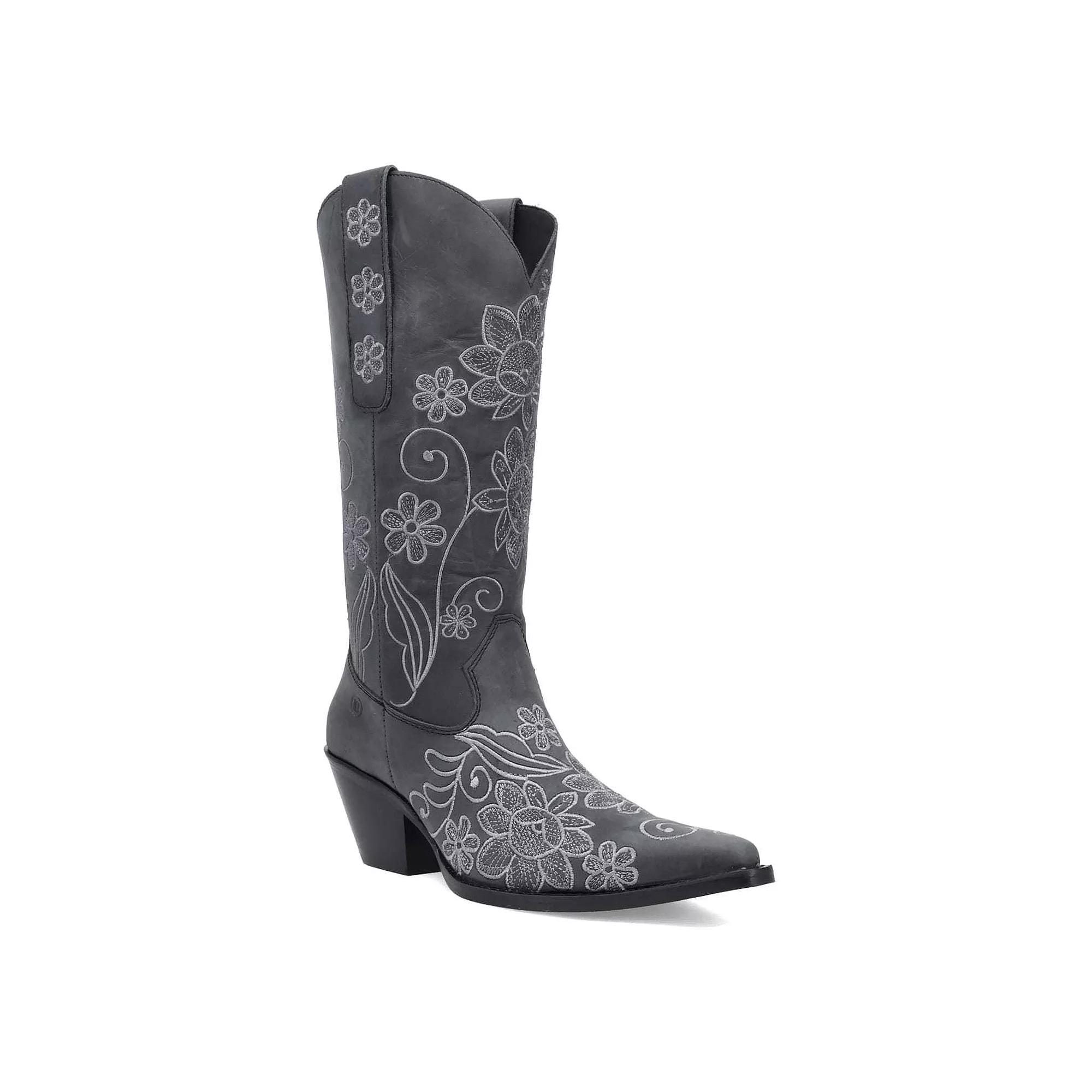 Unleash your bold side with these stunning boots from Dingo, where delicate floral stitching meets dramatic Western scrollwork for a striking visual impact. Perfect for twirling on the dance floor or making a statement in the city, these boots bring an exciting blend of craftsmanship and movement to every outfit. Click this FOOTWEAR GUIDE to find the perfect fit and more! - https://www.kohls.com/feature/shoesizeguide.jsp. FEATURES: Intricate floral stitching with classic Western scrollwork for a layered, dimensional effect, Designed for graceful movement and bold craftsmanship, perfect for casual wear. DETAILS: Pointed toe, Pull-on closure, Treaded outsole, Heel height: 2-in.,. WARNING: Cancer and Reproductive Harm - This product can expose you to chemicals including lead which is known to the state of California to cause cancer, birth defects or reproductive harm and butyl benzyl phthalate (bbp) which is known to the state of California to cause birth defects or other reproductive harm. For more information go to www.P65Warnings.ca.gov. FIT & SIZE: Mid-calf boot shaft, 13-in. boot shaft height, 12-in. boot shaft circumference. MATERIAL & CARE: Leather upper, Polyester lining, Foam midsole & footbed, TPR outsole, Spot clean. Size: 9. Color: Black. Gender: female. Age Group: adult.