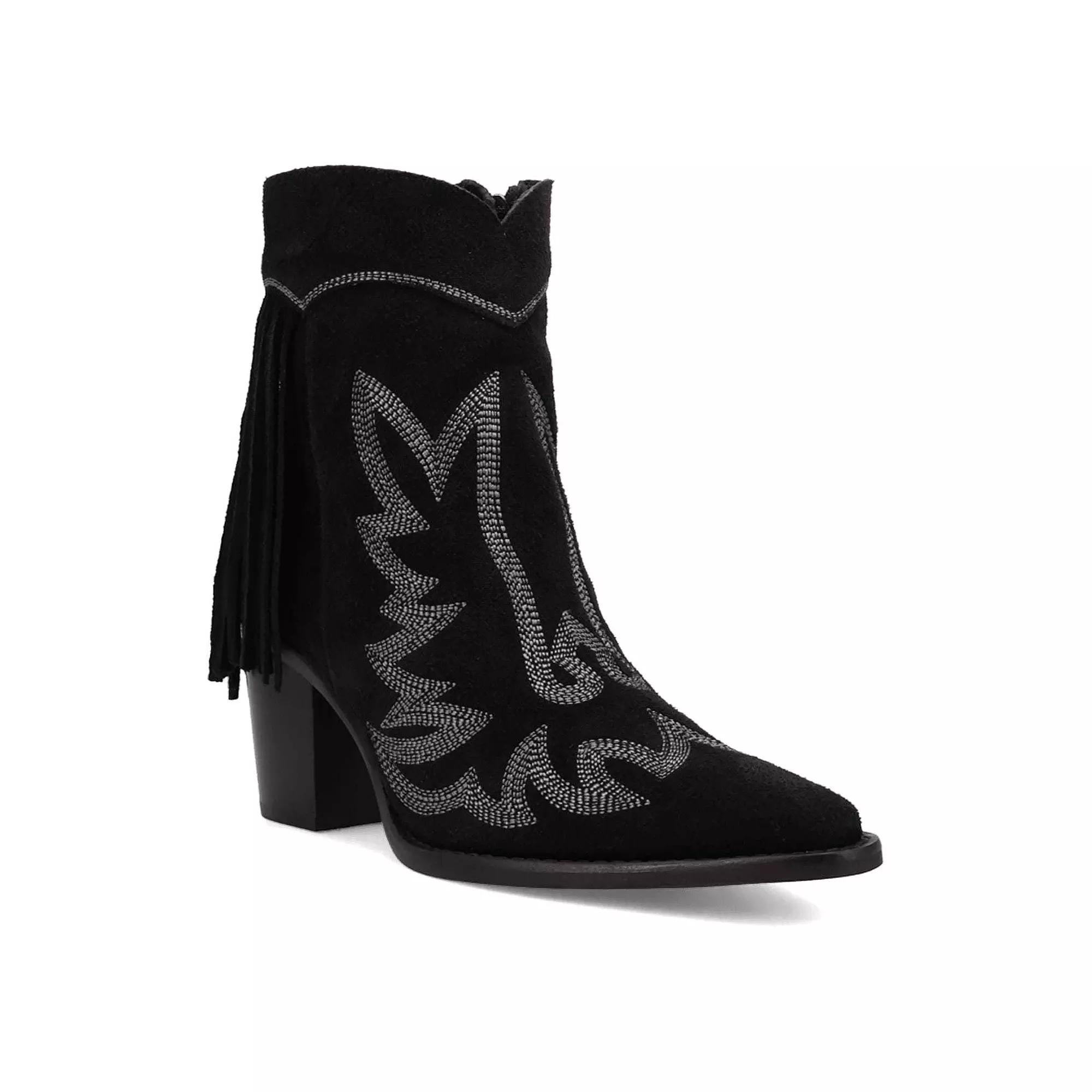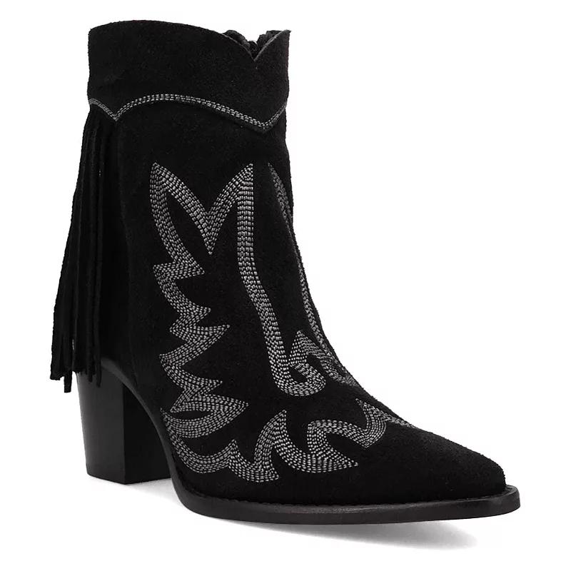 Embrace the spirit of adventure with the Dingo Wild Sage Women's Suede Ankle Boots, where bohemian elegance meets rugged Western flair. Intricate fringe detailing adds a touch of free-spirited charm, making these boots the perfect choice for those who cherish unique style and a life of exploration.Click this FOOTWEAR GUIDE to find the perfect fit and more!Embrace the spirit of adventure with the Dingo Wild Sage Women's Suede Ankle Boots, where bohemian elegance meets rugged Western flair. Intricate fringe detailing adds a touch of free-spirited charm, making these boots the perfect choice for those who cherish unique style and a life of exploration.Click this FOOTWEAR GUIDE to find the perfect fit and more!FEATURES Intricate fringe detailing and a unique blend of bohemian charm and rugged Western style Low shaftDETAILS Suede upper Polyester lining Foam midsole TPR rubber outsole Pointed toe Zipper closure Foam footbed 2 3/4-in. heel 7-in. boot shaft height 10-in. boot shaft circumference Spot clean Imported WARNING: THIS PRODUCT CAN EXPOSE YOU TO CHEMICALS INCLUDING LEAD WHICH IS KNOWN TO THE STATE OF CALIFORNIA TO CAUSE CANCER, BIRTH DEFECTS OR REPRODUCTIVE HARM AND BUTYL BENZYL PHTHALATE (BBP) WHICH IS KNOWN TO THE STATE OF CALIFORNIA TO CAUSE BIRTH DEFECTS OR OTHER REPRODUCTIVE HARM. For more information go to www.P65Warnings.ca.gov. Size: 6. Color: Black. Gender: female. Age Group: adult.