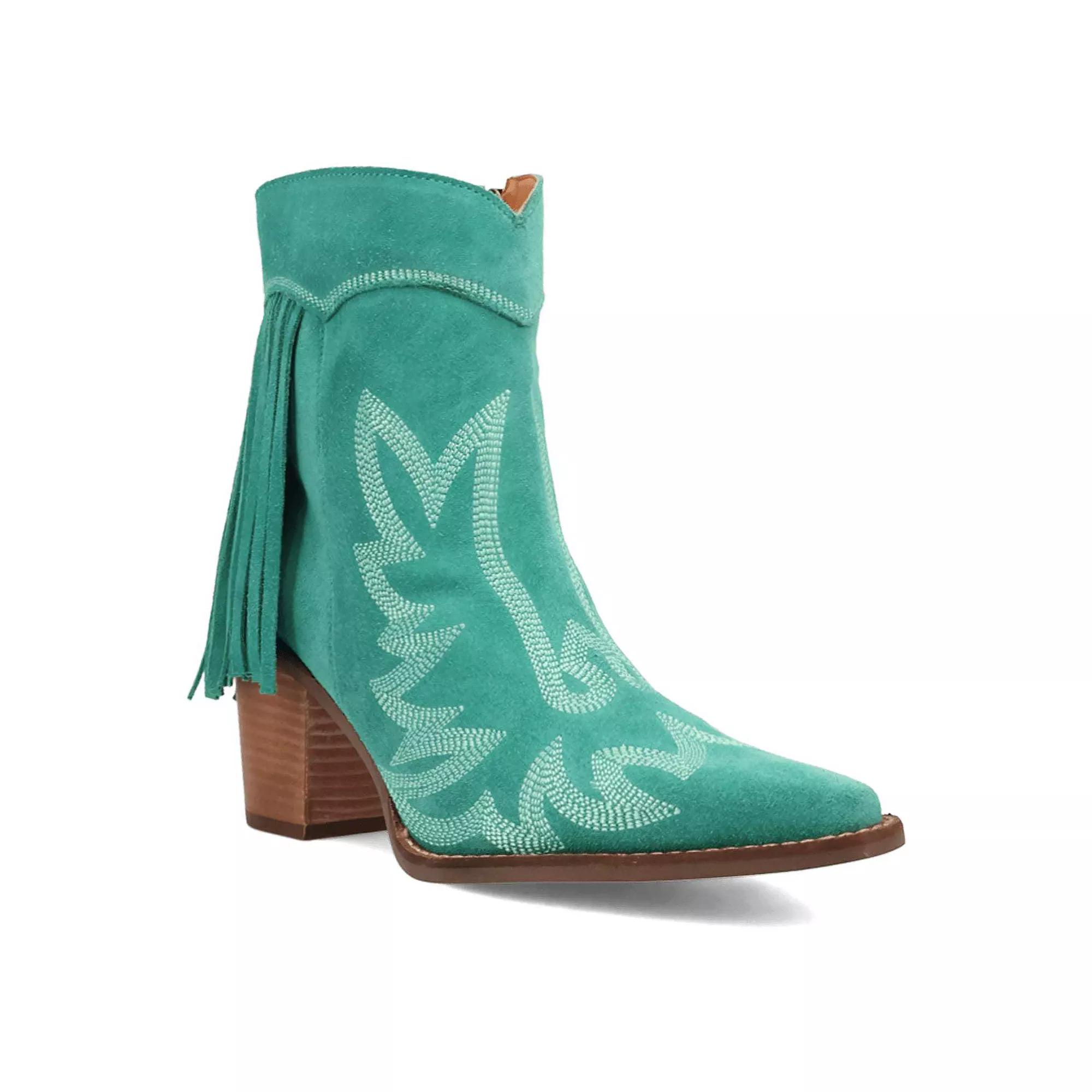 Embrace the spirit of adventure with the Dingo Wild Sage Women's Suede Ankle Boots, where bohemian elegance meets rugged Western flair. Intricate fringe detailing adds a touch of free-spirited charm, making these boots the perfect choice for those who cherish unique style and a life of exploration.Click this FOOTWEAR GUIDE to find the perfect fit and more!Embrace the spirit of adventure with the Dingo Wild Sage Women's Suede Ankle Boots, where bohemian elegance meets rugged Western flair. Intricate fringe detailing adds a touch of free-spirited charm, making these boots the perfect choice for those who cherish unique style and a life of exploration.Click this FOOTWEAR GUIDE to find the perfect fit and more!FEATURES Intricate fringe detailing and a unique blend of bohemian charm and rugged Western style Low shaftDETAILS Suede upper Polyester lining Foam midsole TPR rubber outsole Pointed toe Zipper closure Foam footbed 2 3/4-in. heel 7-in. boot shaft height 10-in. boot shaft circumference Spot clean Imported WARNING: THIS PRODUCT CAN EXPOSE YOU TO CHEMICALS INCLUDING LEAD WHICH IS KNOWN TO THE STATE OF CALIFORNIA TO CAUSE CANCER, BIRTH DEFECTS OR REPRODUCTIVE HARM AND BUTYL BENZYL PHTHALATE (BBP) WHICH IS KNOWN TO THE STATE OF CALIFORNIA TO CAUSE BIRTH DEFECTS OR OTHER REPRODUCTIVE HARM. For more information go to www.P65Warnings.ca.gov. Size: 9.5. Color: Green. Gender: female. Age Group: adult.