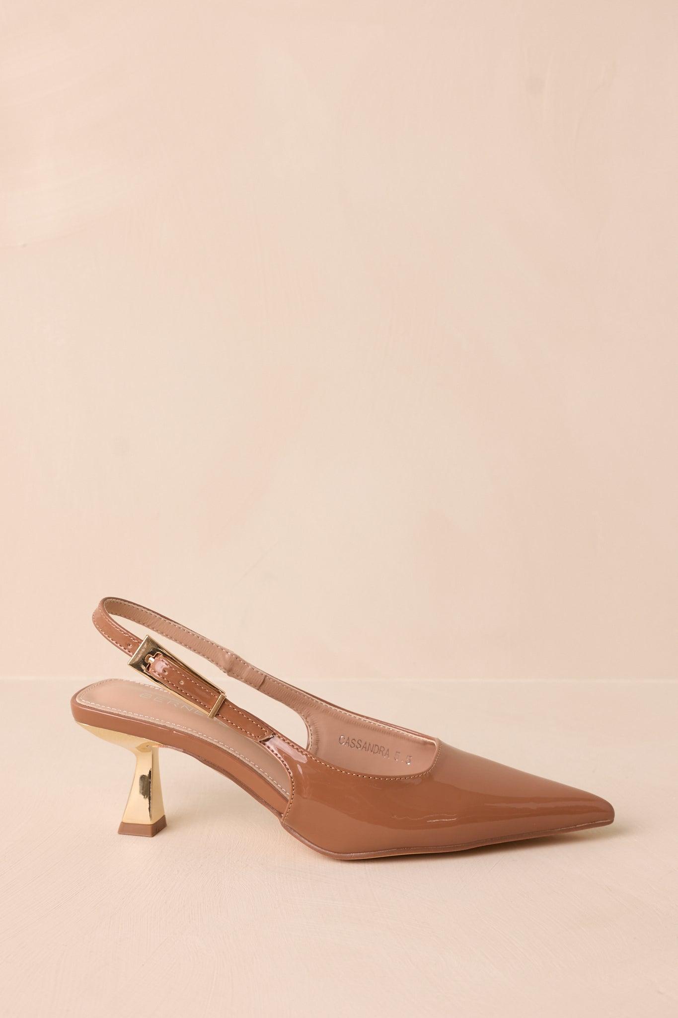 Wine and dine in style with our Dinner For Two Brown Patent Slingback Kitten Heels. These playful brown kitten heels are perfect for a night out on the town, adding a touch of fun to any outfit. So why settle for boring heels when you can strut your stuff in these stylish shoes?! These brown heels feature a pointed toe, a glossy patent finish, an adjustable slingback strap, and a gold kitten heel.