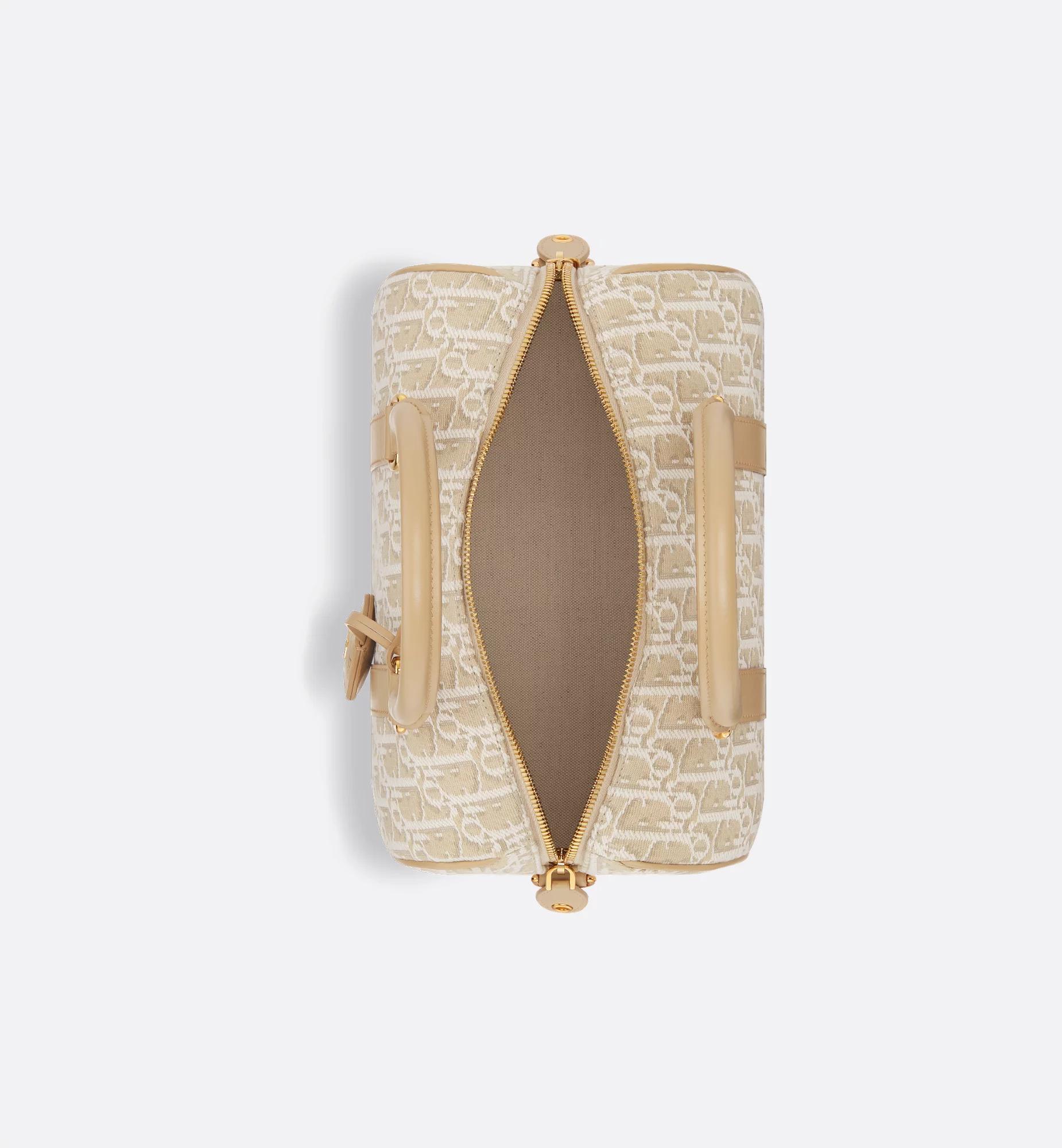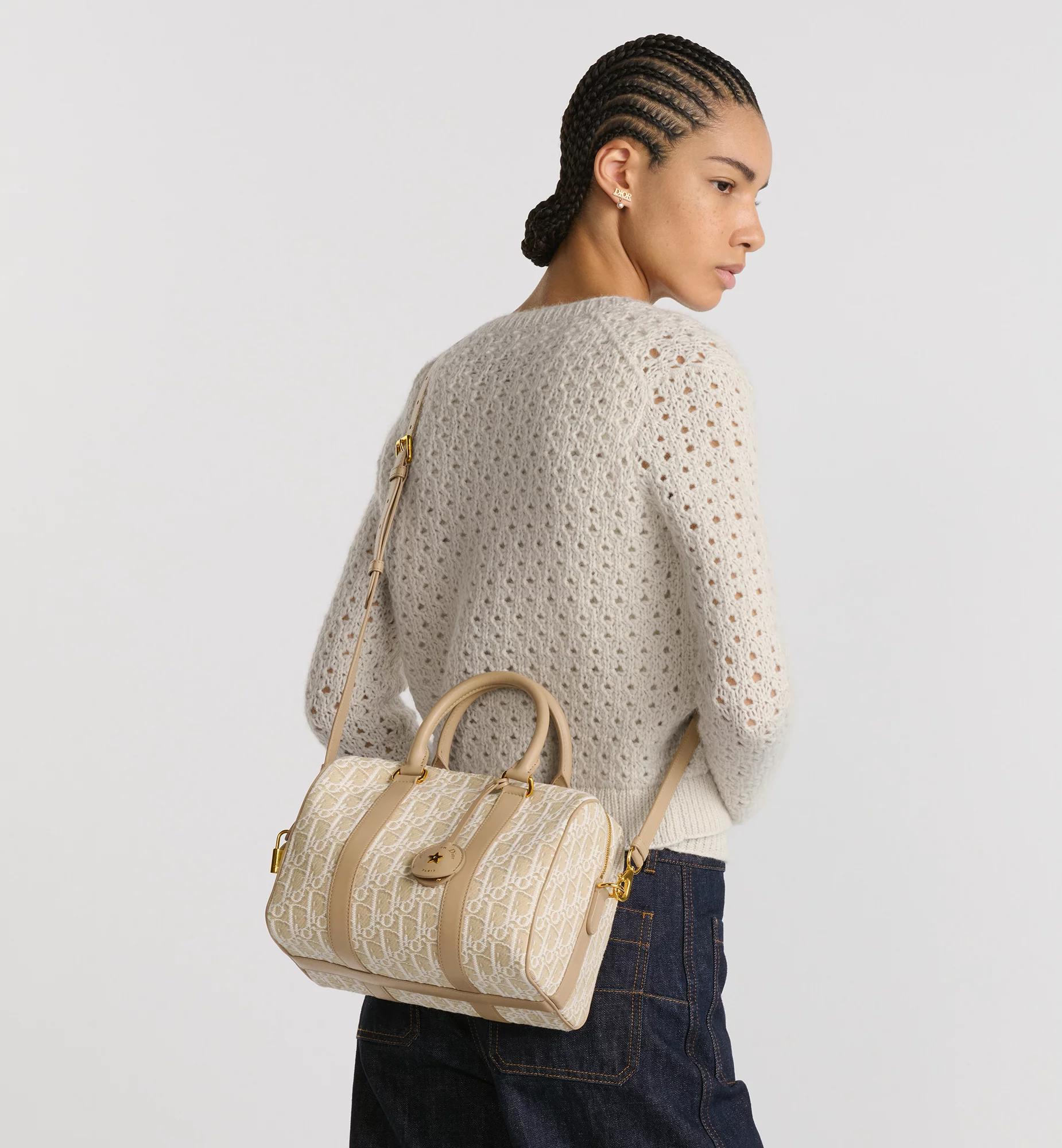 The Dior Groove 25 bag is an elegant and modern creation designed by Maria Grazia Chiuri. The natural Dior Oblique jacquard style is distinguished by a leather key holder with the Christian Dior Paris signature and a gold-finish star. The attached key opens the zipper padlock to reveal a spacious compartment that can accommodate all the essentials, completed by a slip pocket and a zip pocket. Featuring leather top handles and an adjustable, removable strap, the bag can be carried by hand, worn over the shoulder or crossbody as an ideal daily companion.