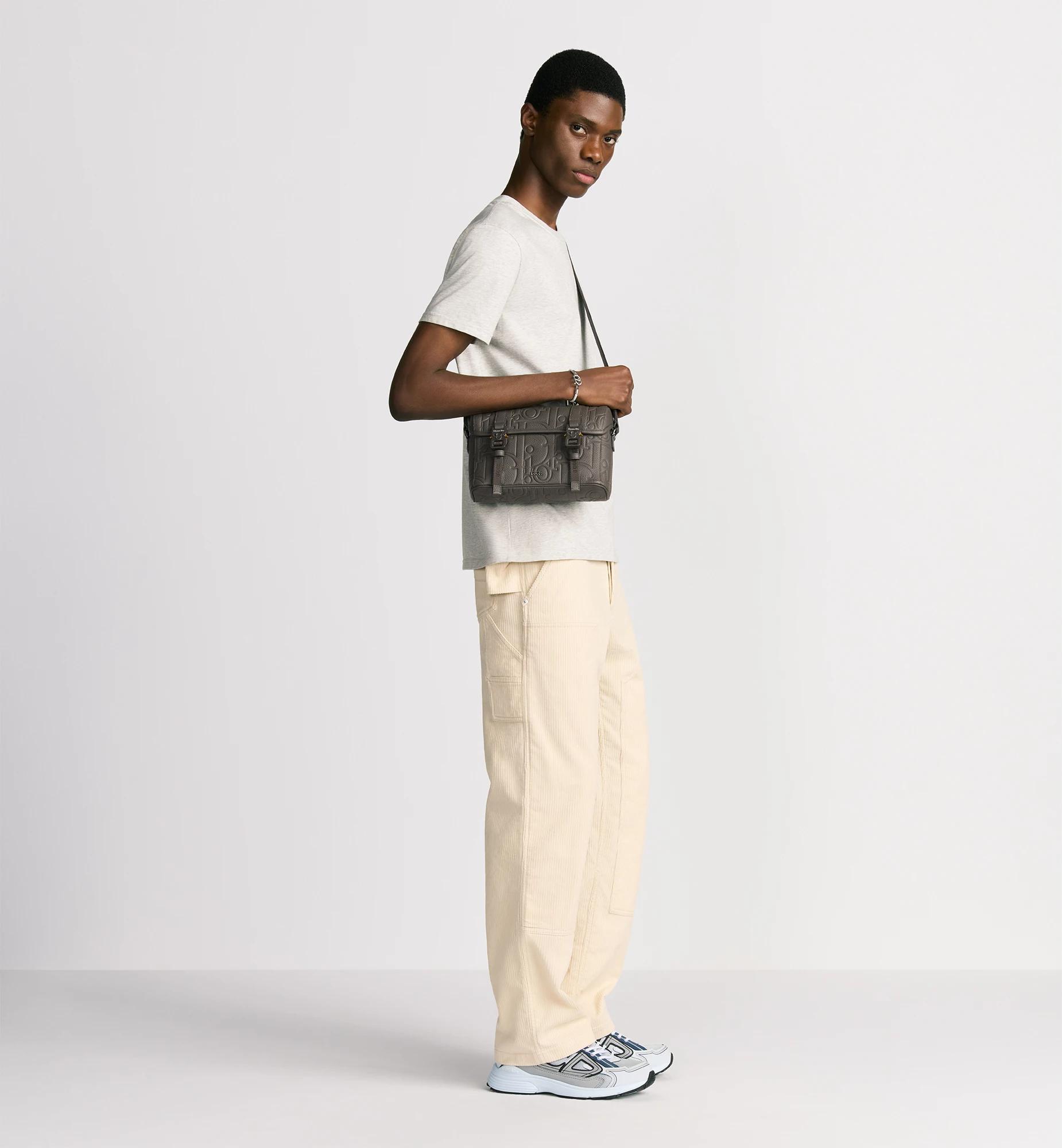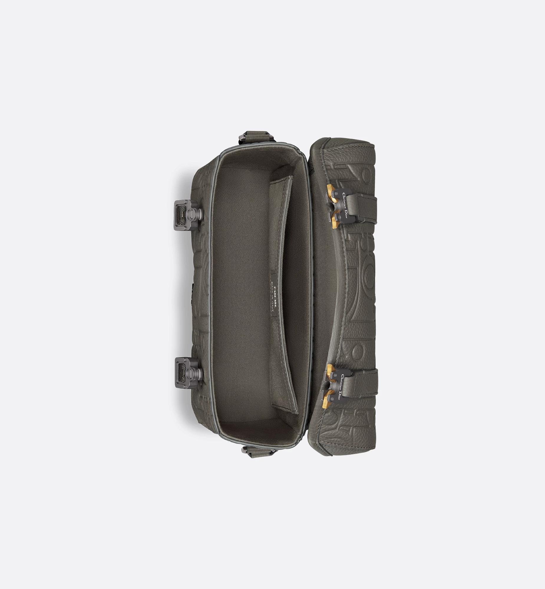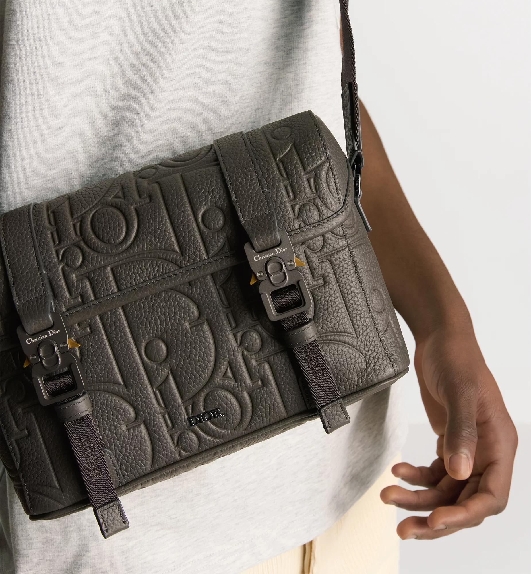 The messenger bag with flap expands the Dior Hit the Road line with a modern design that embodies the House's couture spirit. Displaying the virtuosity of the Dior ateliers, the Dior Gravity leather showcases the iconic motif delicately embossed on gray calfskin. Featuring a flap with aluminum CD mini buckles and two Christian Dior nylon jacquard straps, the style has a spacious compartment to accommodate essentials, as well as an adjustable shoulder strap. The practical bag will add the finishing touch to casual attire. Main composition: calfskin and technical fabric. Technical fabric, cotton and calfskin lining. Main compartment with flap and CD aluminum mini buckles. Interior slip pocket. Adjustable Christian Dior nylon jacquard and calfskin shoulder strap. Ruthenium-finish brass Dior signature on the front. Embossed Dior signature on the interior. Dust bag included. Made in Italy