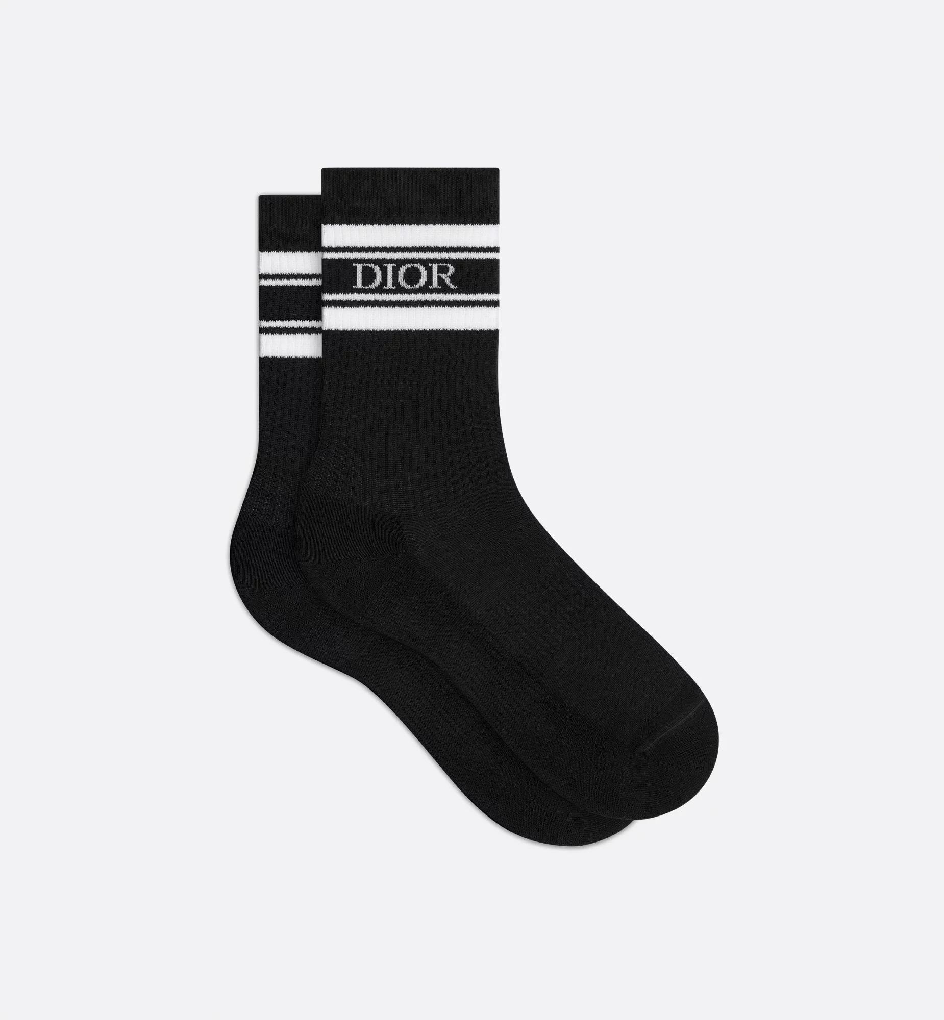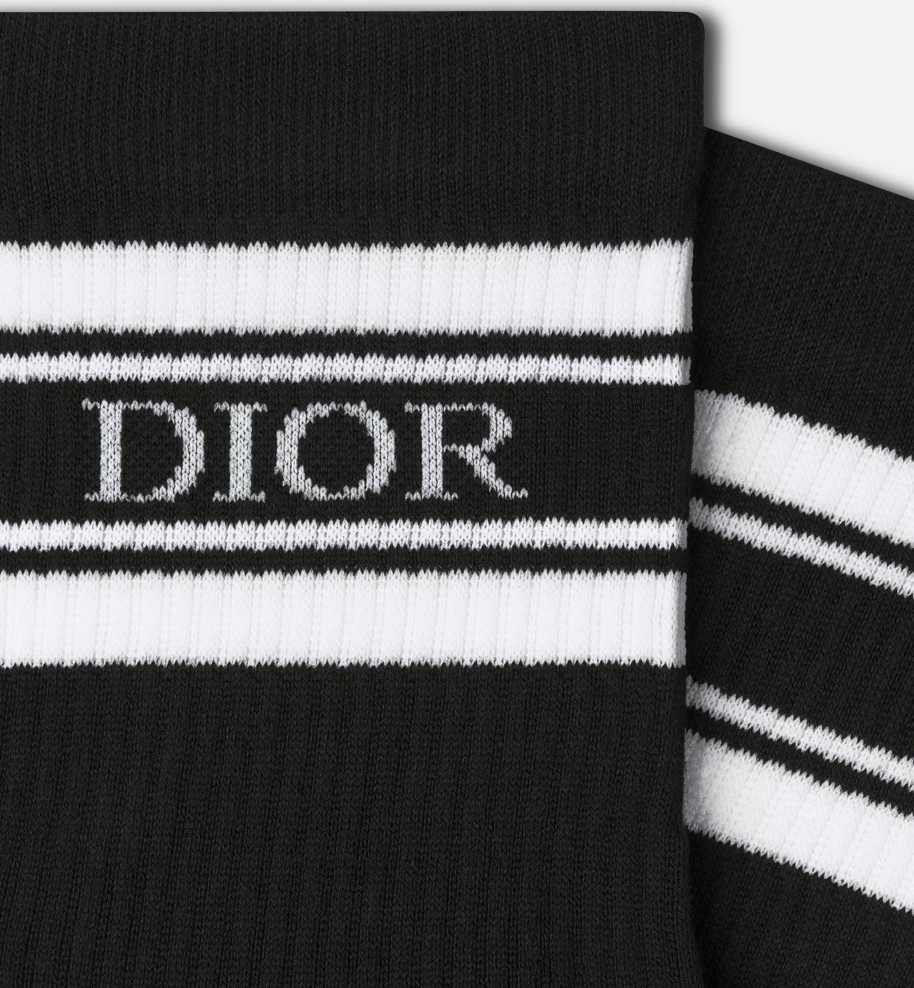 The socks feature a ribbed sportswear silhouette. Crafted in a black cotton blend, they are adorned with a contrasting white Dior jacquard band. Very comfortable, the socks will complete any relaxed outfit. Contrasting white Dior jacquard band. Ribbed detailing. 80% cotton, 17% polyamide, 3% elastane. Made in Italy