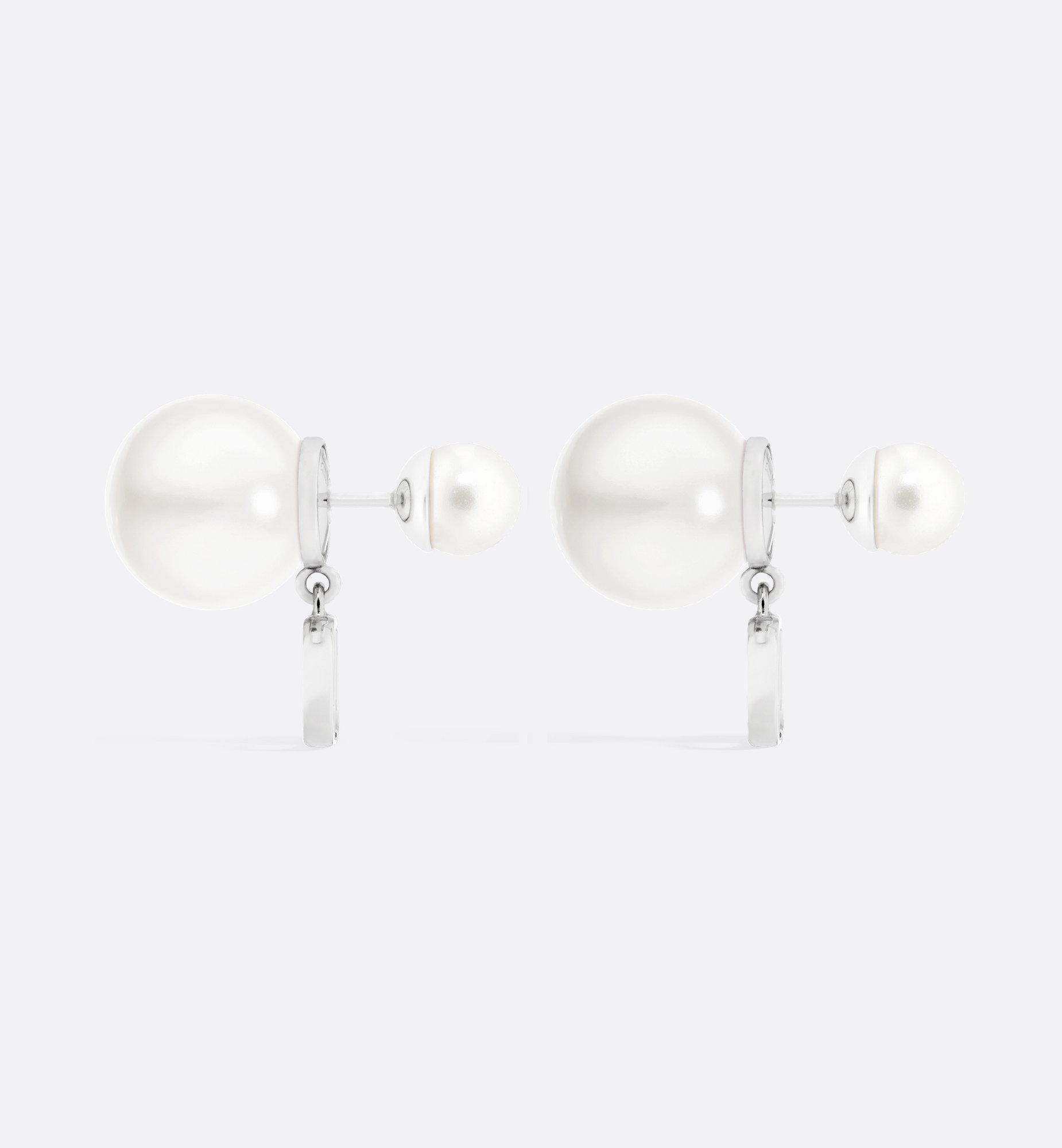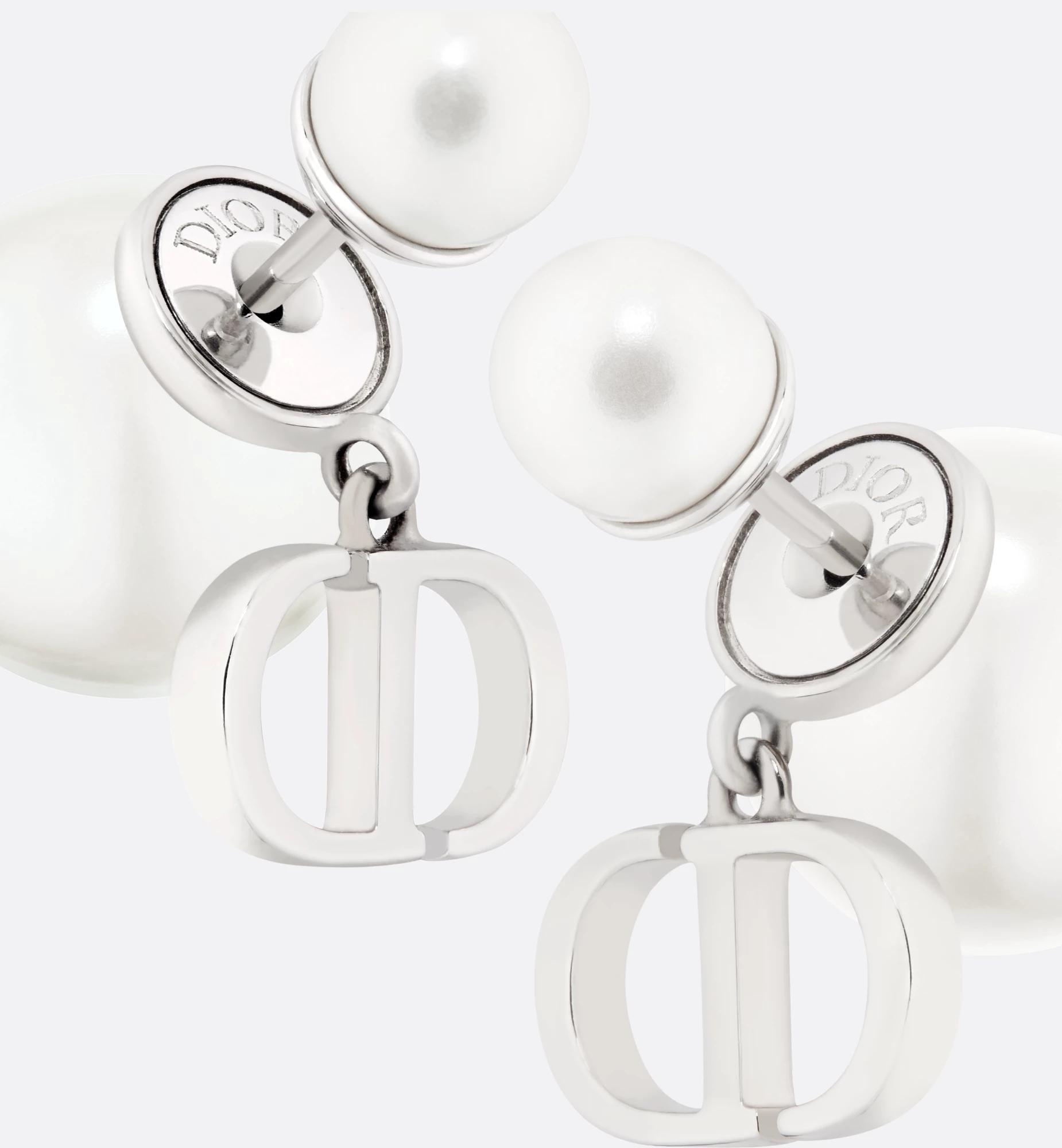 New for Winter 2025, the elegant and graceful Dior Tribales earrings offer a new interpretation of an iconic House style. The hallmark white resin pearls are adorned with the CD signature in silver-finish metal. The delicate and timeless earrings can be paired with creations from the Petit CD line. White resin pearls. CD signatures. Silver-finish metal. Integrated clasp on the rear pearl. Sold as a pair. Made in Portugal