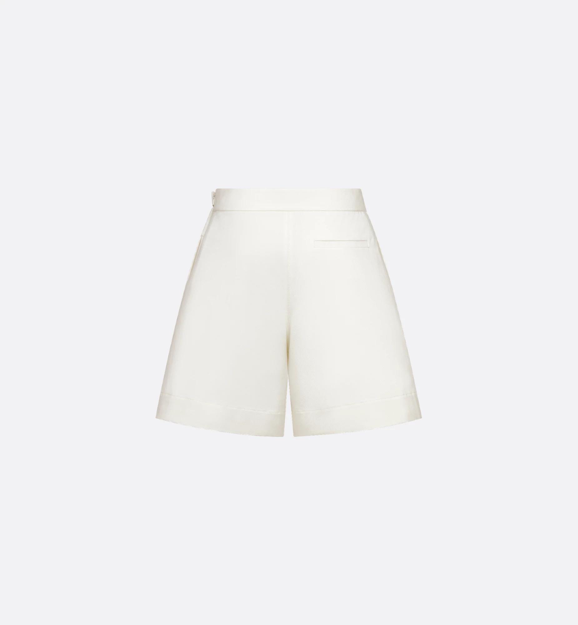 Part of the Dioriviera capsule, the shorts embody the House's vision of laid-back elegance. Crafted in ecru cotton gabardine, they feature a flared cut enhanced by a laced detail on the front, while the Christian Dior Paris signature accents the waist. Completed by discreet slit pockets, the shorts can be coordinated with other Dioriviera creations. Christian Dior Paris signature at the waist. Laced front closure. Unlined. 100% cotton. Made in Italy