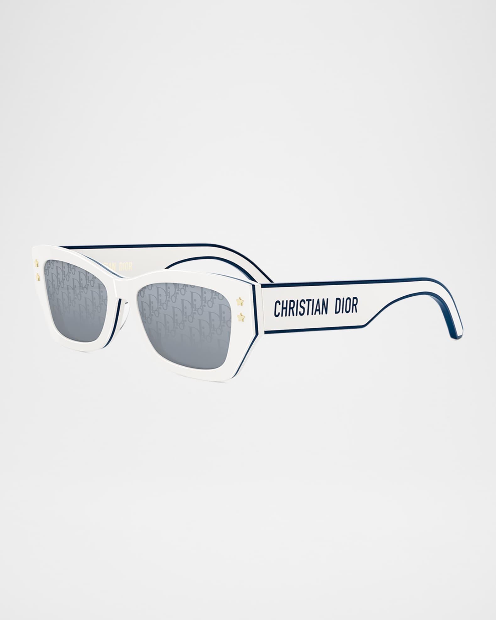 Dior "DiorPacific S2U" bicolor square sunglasses in acetate Lens/bridge/temple (in mm): 53-17-140 Star accents on frames Monogram gradient lenses Saddle nose bridge Logo on temples Thin, tapered arms 100% UVA/UVB protection Made in Italy Proposition 65 warning for California residents
