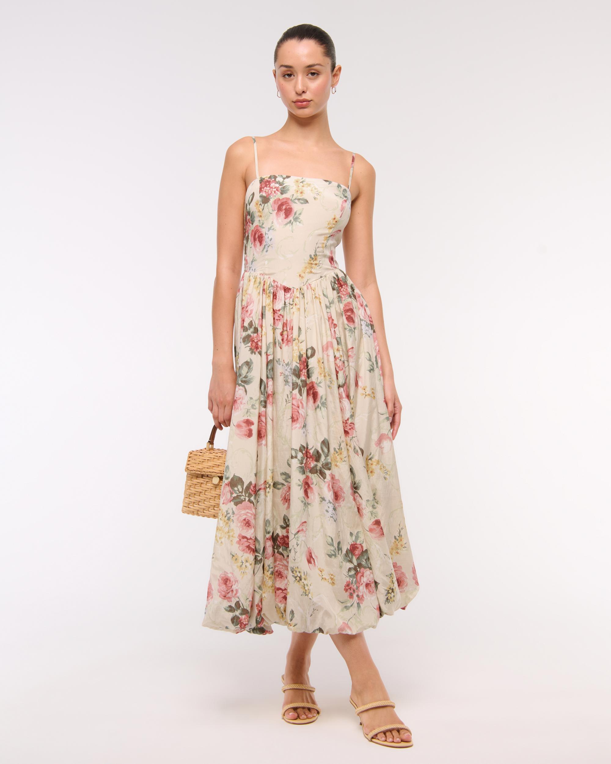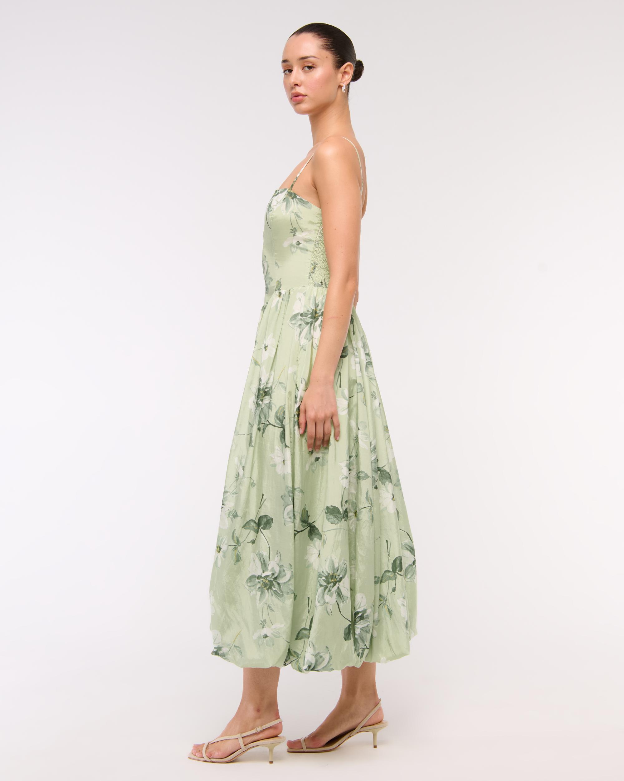 Dipped-Waist Bubble Hem Midi Dress