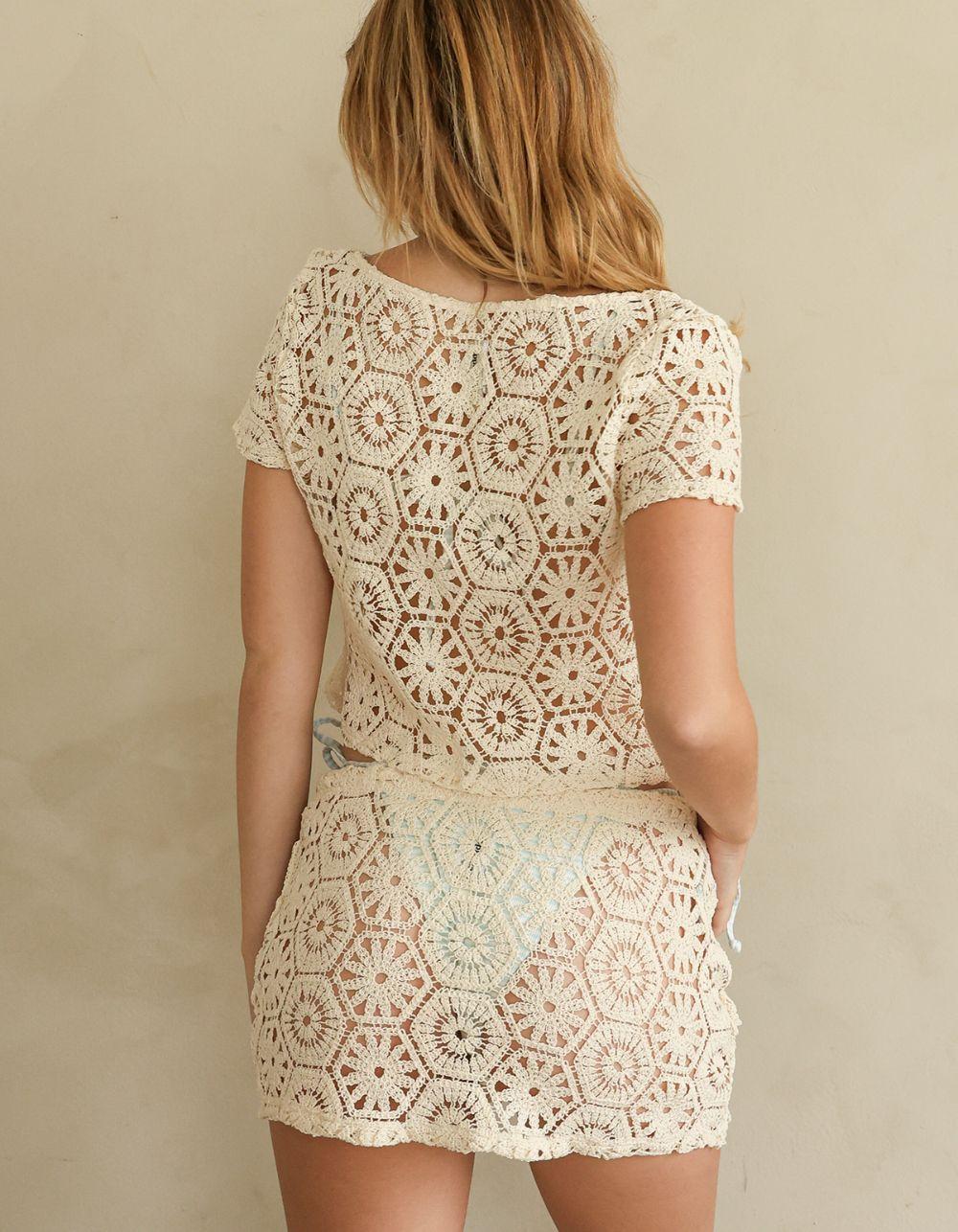 A mini crochet skirt featuring a tie in the front for an adjustable fit. Wear it high-waisted or lower on the hips for a cute summer cover-up. Pairs perfectly with our matching Salt Life Top.- 100% Cotton - Made in Vietnam - Crochet see through - Tie cord at waist - UnlinedThis item is may take a few extra days to process. All other products in your order will be shipped separately.