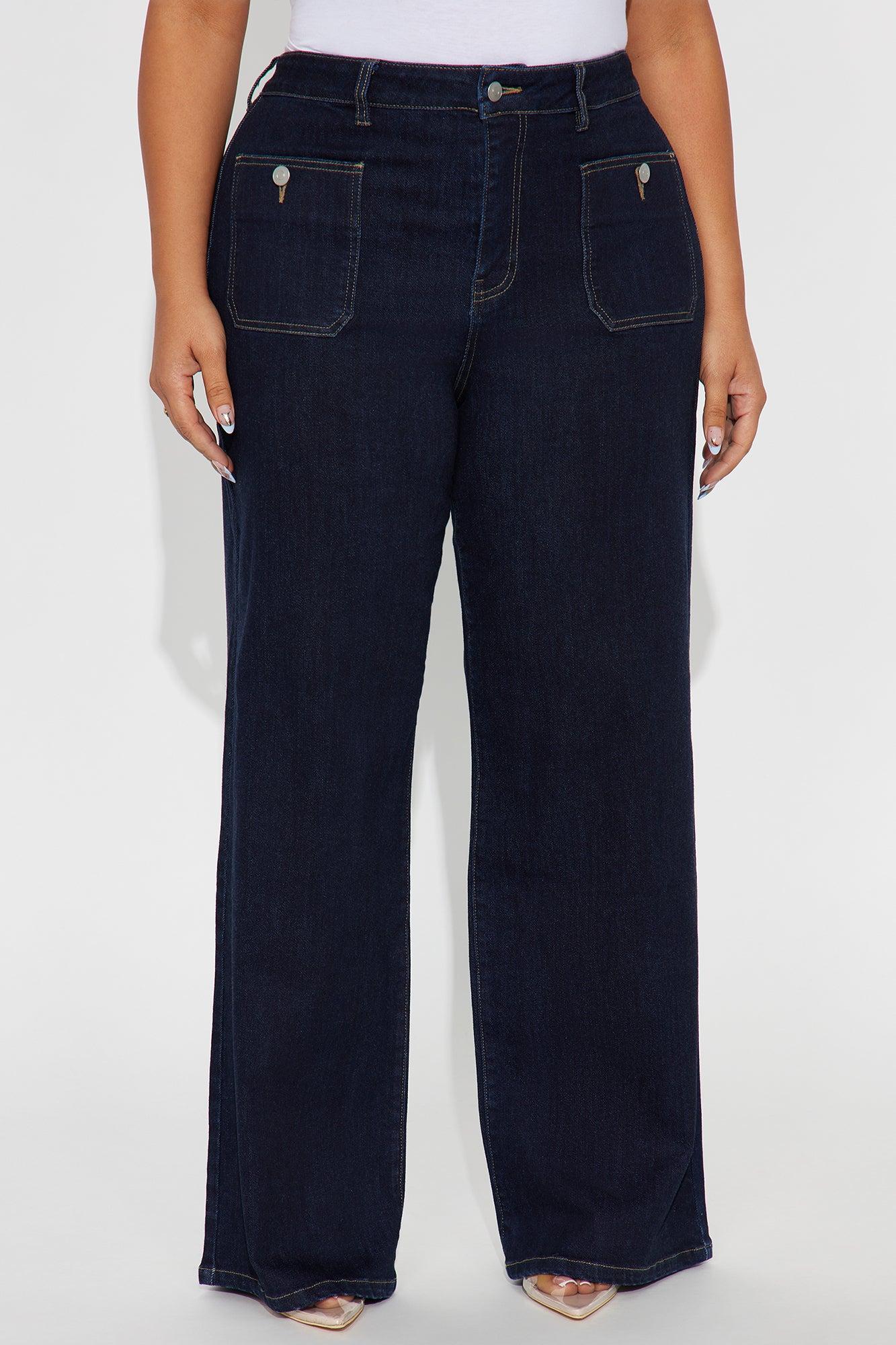 Available In Dark Wash. Wide Leg Jean Medium Stretch Patch Pockets 12" Rise 33" Inseam 94% Cotton 4% Polyester 2% Spandex Imported California Proposition 65WARNING: Cancer and Reproductive Harm - www.P65Warnings.ca.gov.