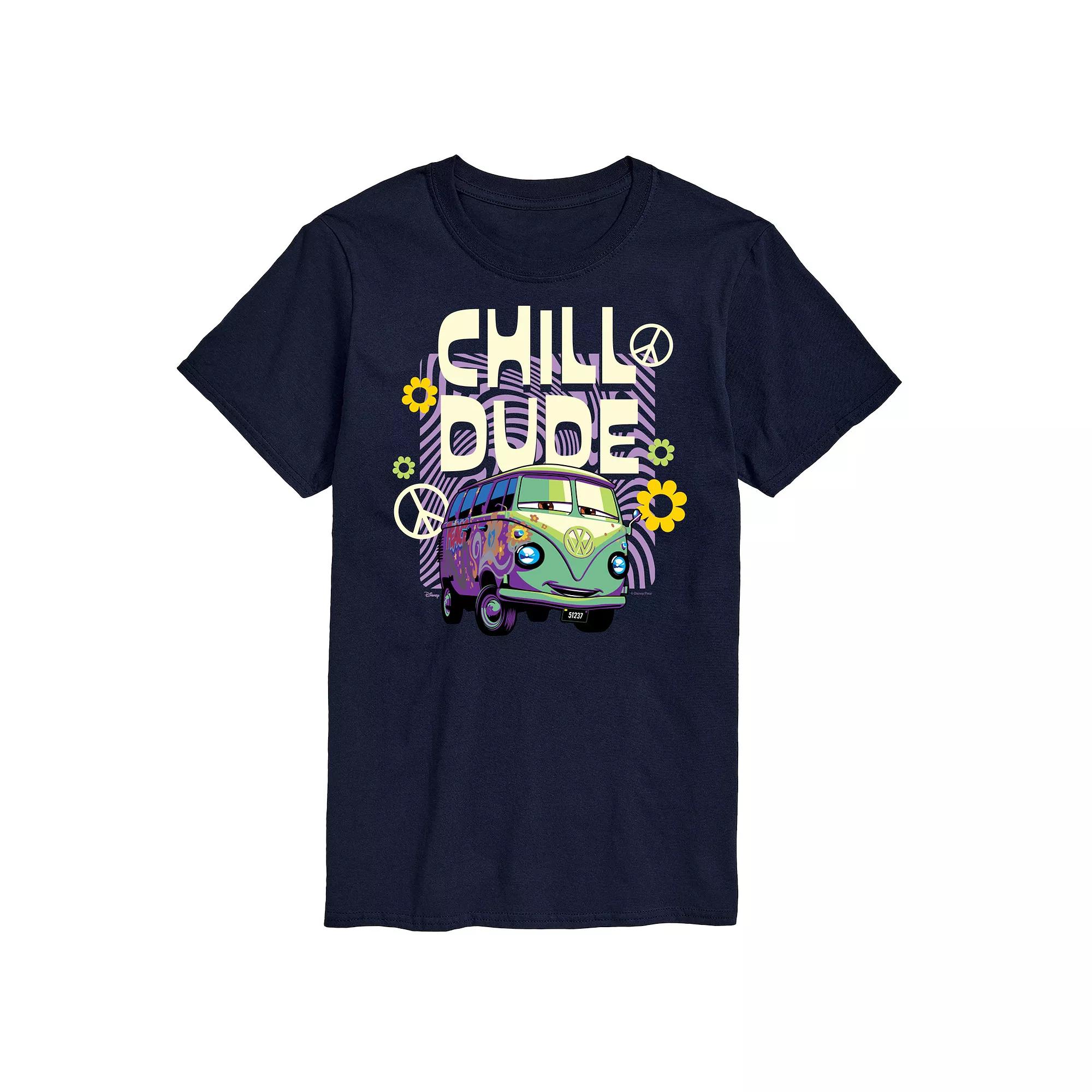 Youll take the cup wearing this Disney / Pixar Cars Mens Filmore Chill Dude Graphic Tee. Disney / Pixar FEATURES Crewneck Short sleeveFABRIC & CARE Solid colors: cotton; Heather colors: cotton, polyester Machine wash Imported Size: XXL. Color: Navy. Gender: male. Age Group: adult.