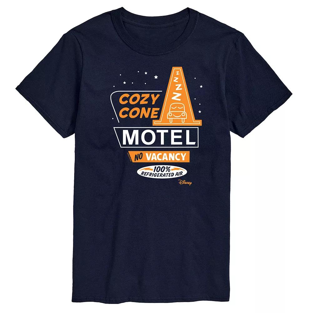 Youll take the cup wearing this Disney / Pixar Cars Mens Cozy Cone Motel Graphic Tee. Disney / Pixar FEATURES Crewneck Short sleeveFABRIC & CARE Solid colors: cotton; Heather colors: cotton, polyester Machine wash Imported Size: XL. Color: Navy. Gender: male. Age Group: adult.