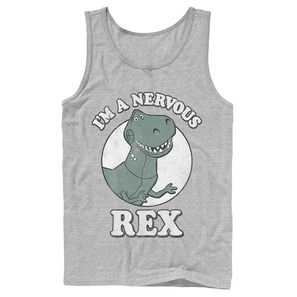 Youll look dino-mite wearing this mens Toy Story tank top. Disney/Pixar Youll look dino-mite wearing this mens Toy Story tank top. Disney/Pixar Crewneck SleevelessFABRIC & CARE Cotton, polyester Machine wash Imported Color: Med Grey. Gender: male. Age Group: adult. Material: Polyester|Cotton.