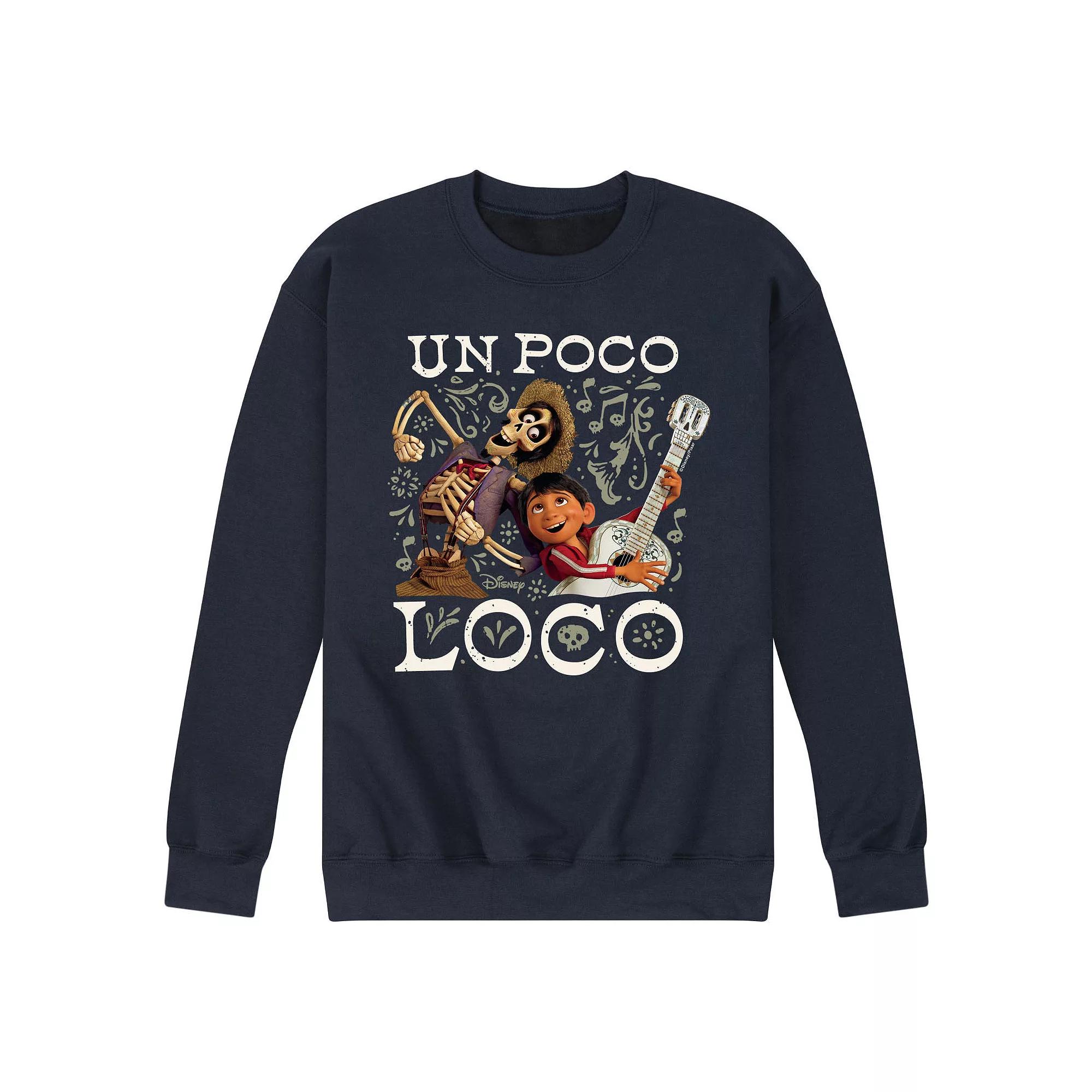Layer in cool, Disney/Pixar fashion with this mens Coco Un Poco Loco sweatshirt. Disney/Pixar Layer in cool, Disney/Pixar fashion with this mens Coco Un Poco Loco sweatshirt. Disney/Pixar FEATURES Crewneck Long sleevesFABRIC & CARE Cotton, polyester Machine wash Imported Size: XXL. Color: Black. Gender: male. Age Group: adult. Pattern: Graphic.