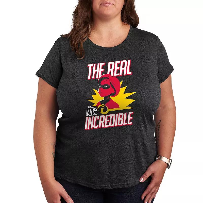 She will love showing off her style with this Disney / Pixars The Incredibles Plus Mrs. Incredible Graphic Tee. Disney / Pixar FEATURES Short sleeves CrewneckFABRIC & CARE Solid Color: Cotton ; Heather Colors: Cotton/Polyester Machine wash Imported Size: 1X. Color: Black. Gender: female. Age Group: adult.