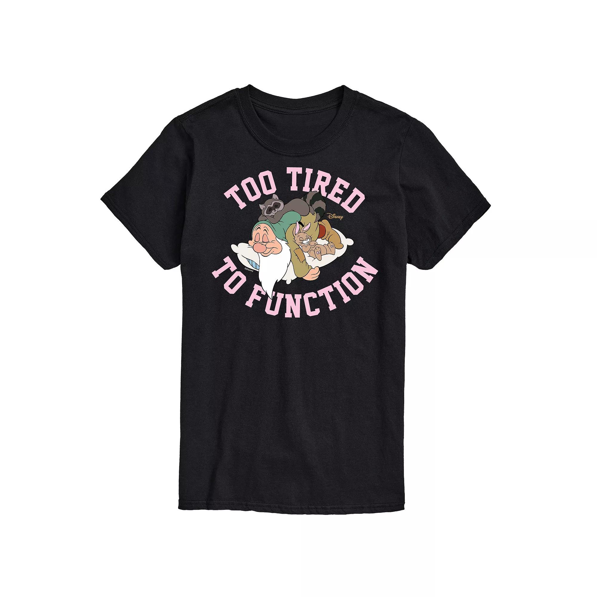 Add fun new style to your casual wardrobe with this Disney Princess Big & Tall Too Tired To Function Graphic Tee. Disney Add fun new style to your casual wardrobe with this Disney Princess Big & Tall Too Tired To Function Graphic Tee. Disney FEATURES Crewneck Short sleeveFABRIC & CARE Solid colors: cotton; Heather colors: cotton, polyester Machine wash Imported Size: XXL Tall. Color: Black. Gender: male. Age Group: adult. Material: Polyester|Cotton.