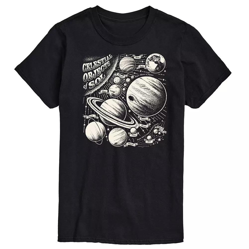 Add a quirky touch to your wardrobe with this Mens Celestial Objects Graphic Tee. Add a quirky touch to your wardrobe with this Mens Celestial Objects Graphic Tee. FEATURES Crewneck Short sleeveFABRIC & CARE Solid Color: Cotton ; Heather Colors: Cotton/Polyester Machine wash Imported Size: XS. Color: Black. Gender: male. Age Group: adult.