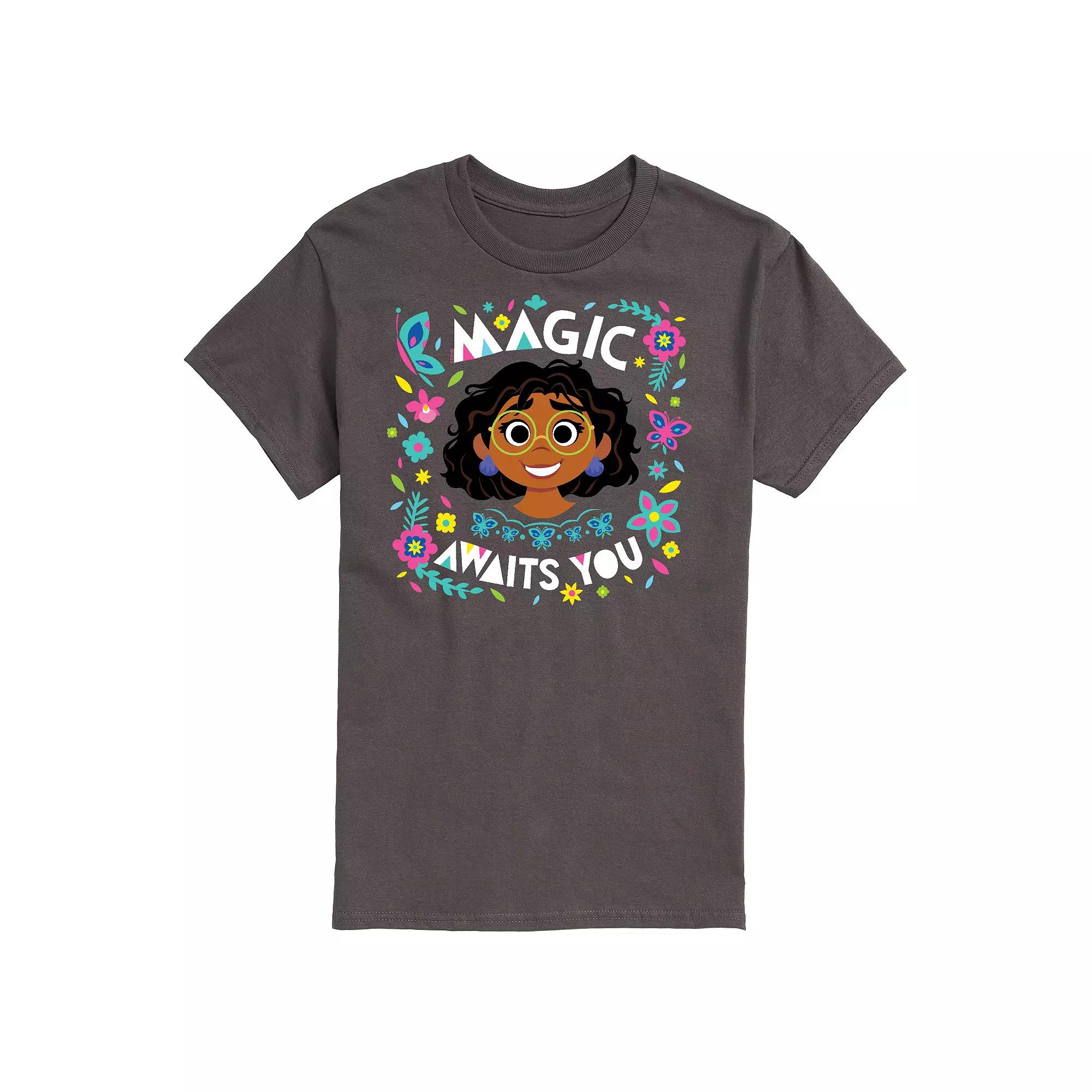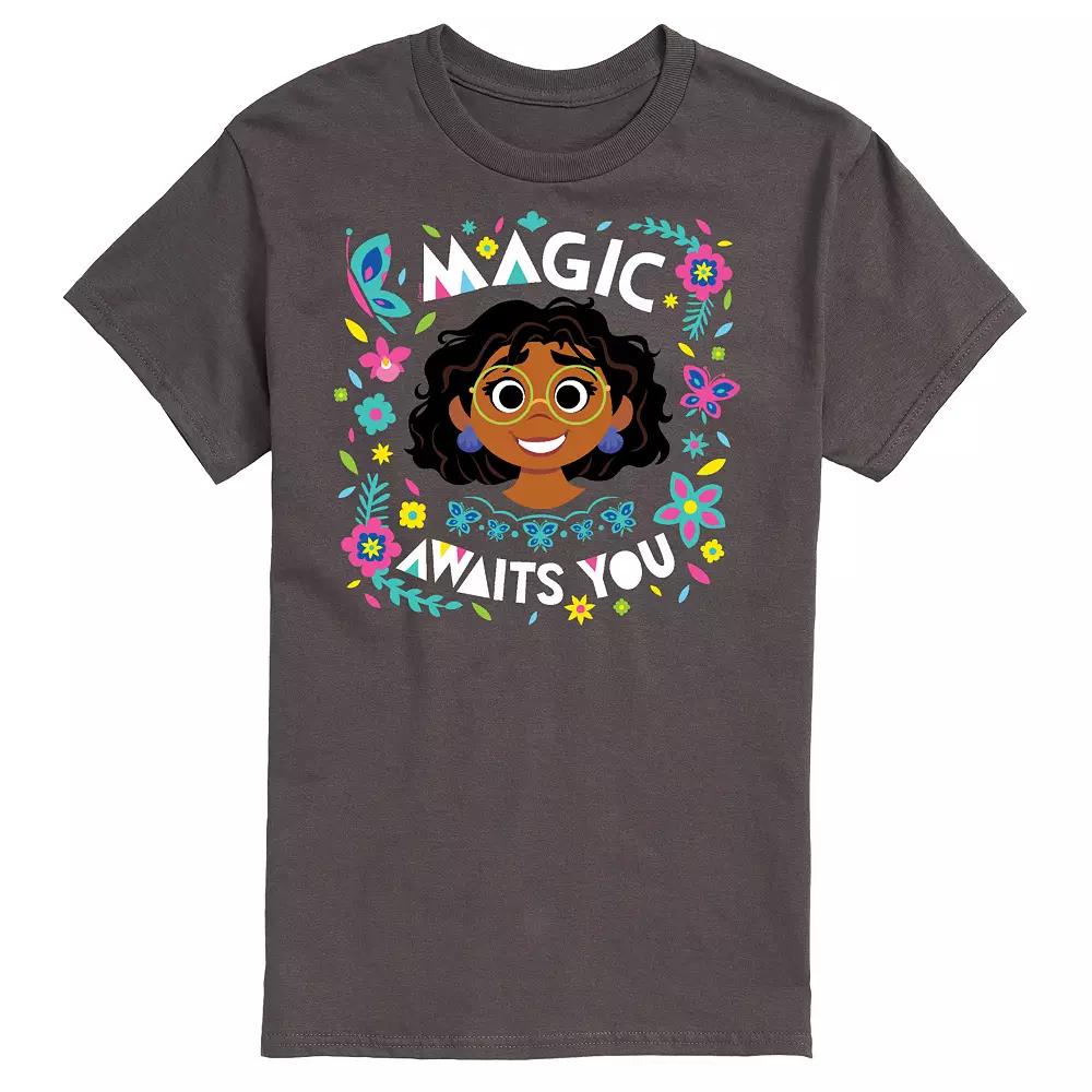 Hell love the look of this Disneys Encanto Magic Awaits Mens Graphic Tee. Disney Hell love the look of this Disneys Encanto Magic Awaits Mens Graphic Tee. Disney FEATURES Crewneck Short sleeveFABRIC & CARE Solid: cotton; Heather: cotton, polyester Machine wash Imported Color: Charcoal. Gender: male. Age Group: adult.