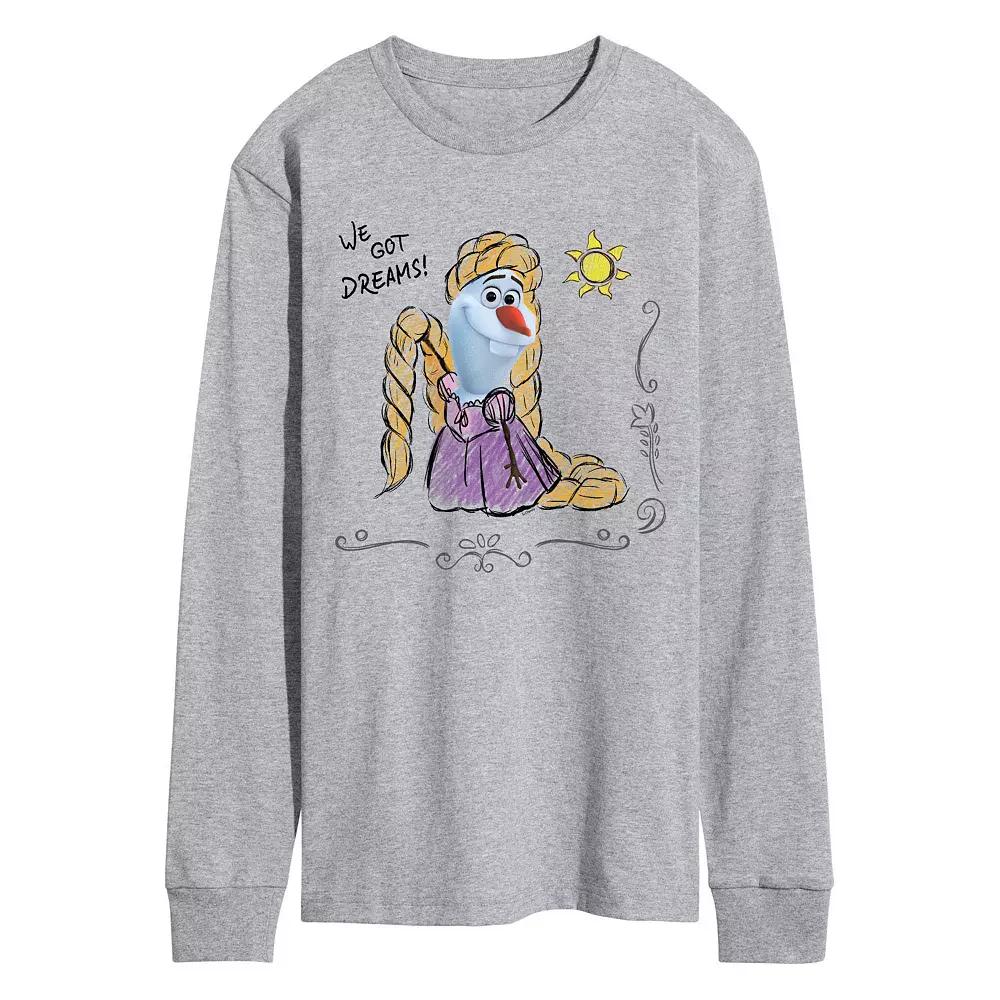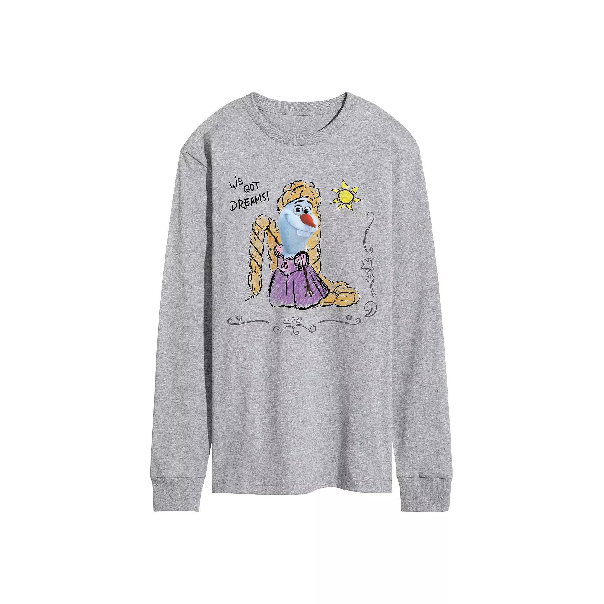 Give your wardrobe a refresh with this Disneys Frozen Mens Olaf Tangled Long Sleeve Graphic Tee. Disney Give your wardrobe a refresh with this Disneys Frozen Mens Olaf Tangled Long Sleeve Graphic Tee. Disney FEATURES Crewneck Long sleeveFABRIC & CARE Cotton, polyester Machine wash Imported Color: Med Grey. Gender: male. Age Group: adult.