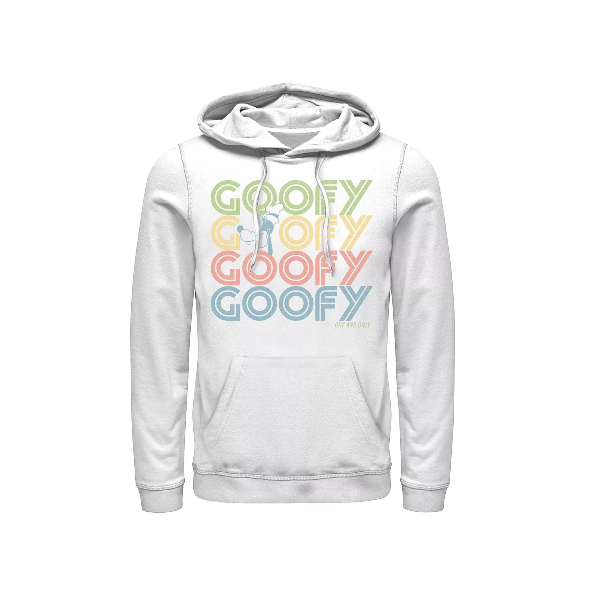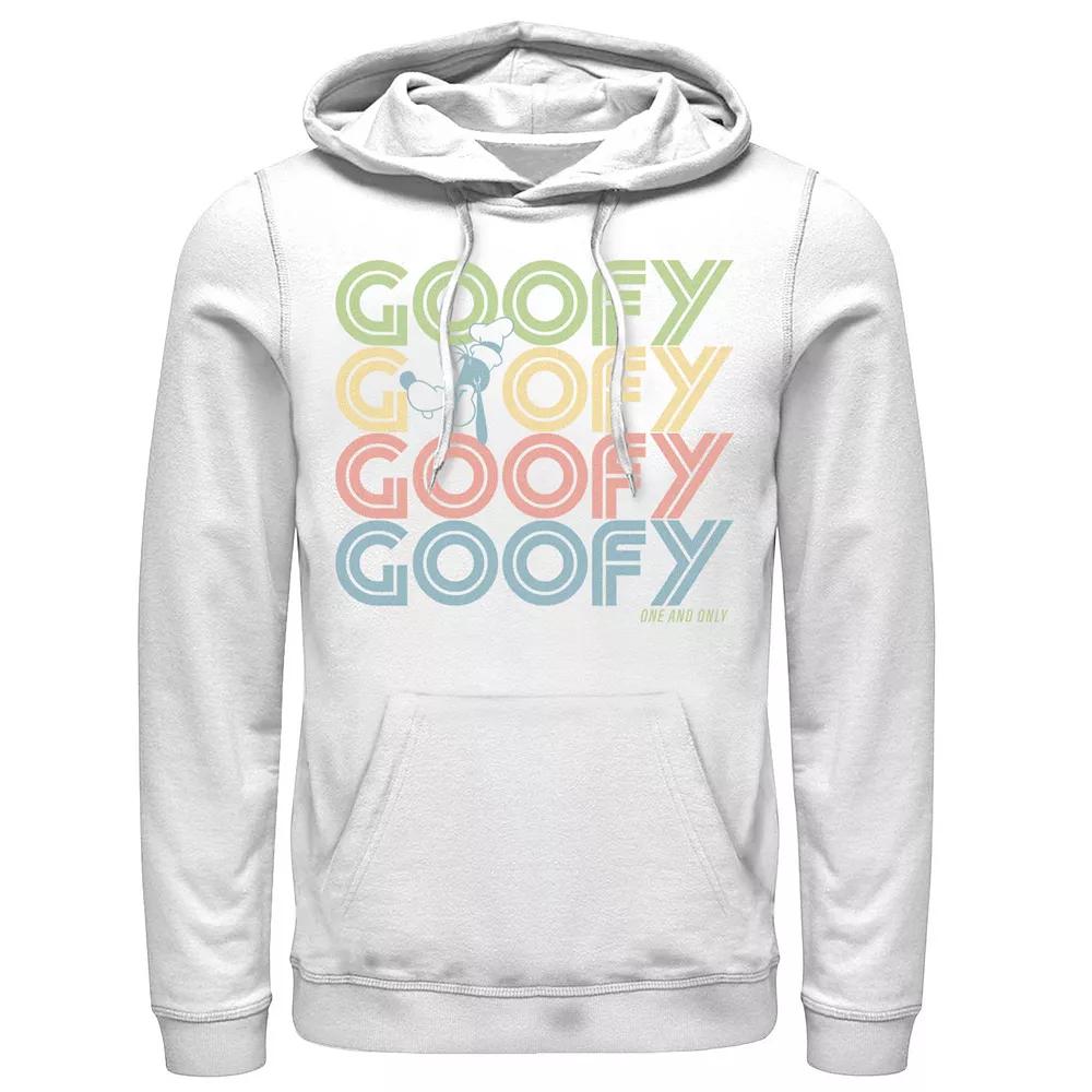 Who knew that dressing "mousey" could be so cute!? Celebrate Walt Disney's most iconic character with this officially licensed Mickey Mouse and Friends hoodie! All of your favorites like Mickey Mouse, Minnie Mouse, Goofy, Pluto, Donald Duck, and more are featured across this adorable Mickey design that is perfect for your next trip to Disneyland! | Disney® Men's Retro Stack Goofy Fleece Graphic Hoodie, White, 3Xl