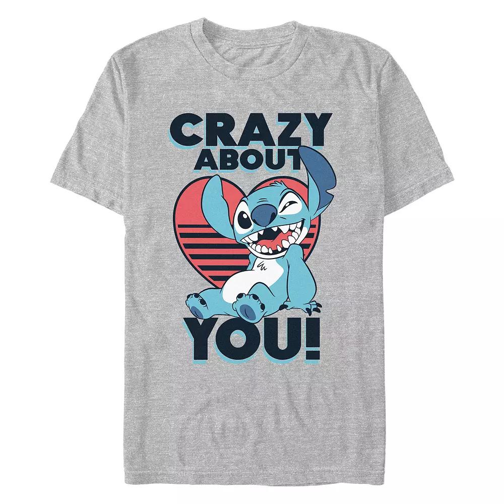 Spread the love on Valentines Day, or everyday in this Disneys Lilo & Stitch Crazy About You Mens Graphic Tee. DisneyFEATURES Crewneck Short sleeveFABRIC & CARE Cotton, polyester Machine wash Imported Size: XS. Color: Athletic Heather. Gender: male. Age Group: adult.