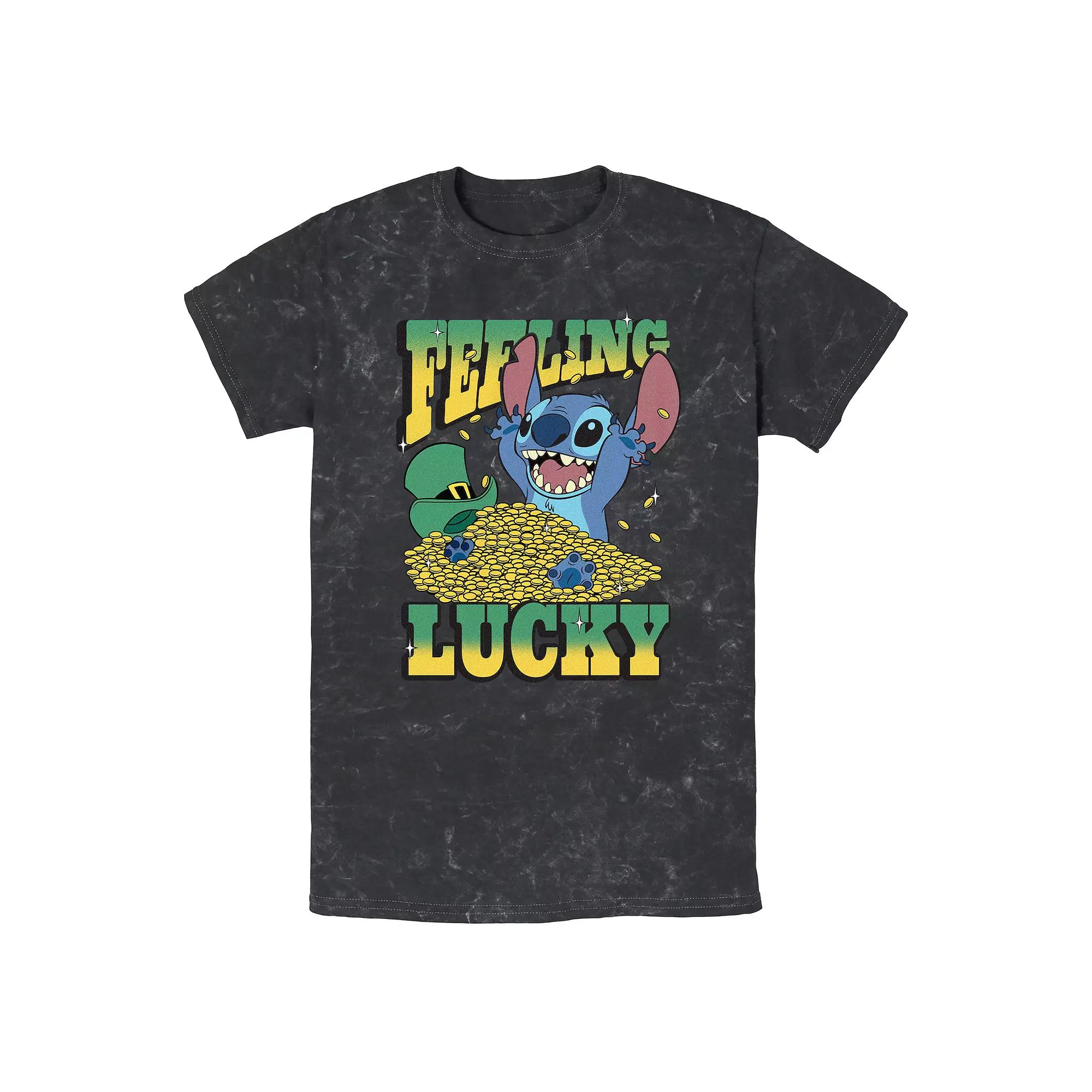 Disney's Lilo & Stitch Feeling Lucky Mineral Wash Men's Graphic Tee,