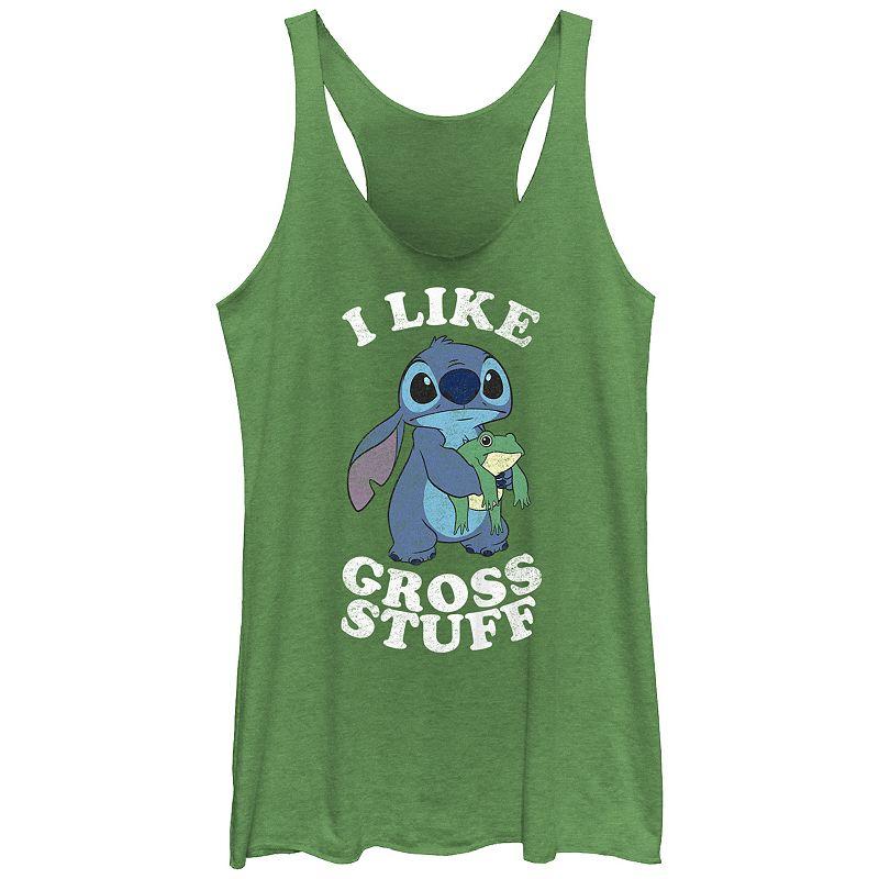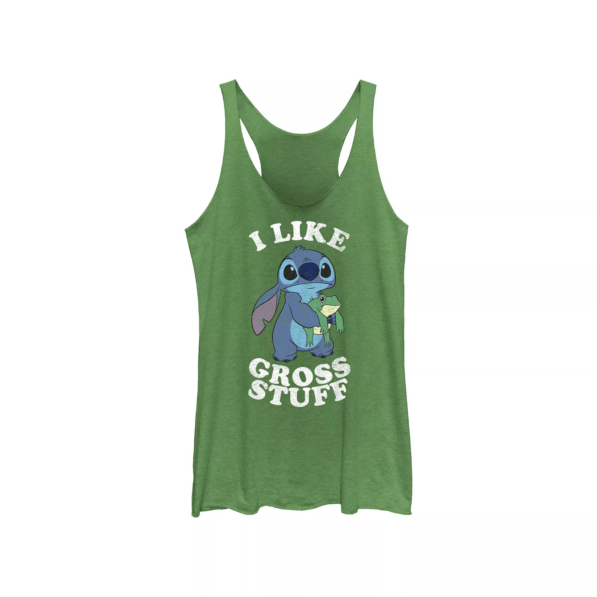 Disney's Lilo & Stitch I Like Gross Stuff Like Frogs Juniors' Tri-Blend Racerback Tank Top, Girl's,