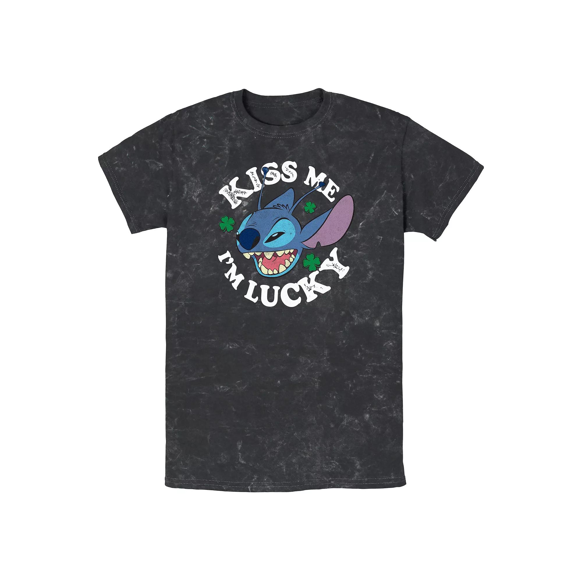 Hit the town this St. Paddy's in style with this Disney's Lilo & Stitch Kiss Me I'm Lucky Mineral Wash men's graphic tee. ©DisneyHit the town this St. Paddy's in style with this Disney's Lilo & Stitch Kiss Me I'm Lucky Mineral Wash men's graphic tee. ©DisneyFEATURES Crewneck Short sleevesFABRIC & CARE Cotton Machine wash Imported Size: XXL. Color: Black. Gender: male. Age Group: adult. Material: Polyester|Cotton.