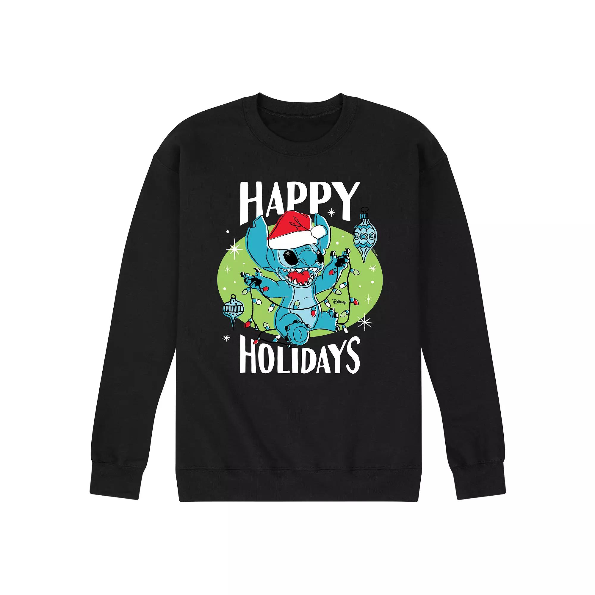 Add a hint of magical holiday spirit to any wardrobe with this Disneys Lilo & Stitch Happy Holidays Tee. FEATURES Crewneck Long sleeveFABRIC & CARE Cotton, polyester Imported Machine wash Color: Black. Gender: male. Age Group: adult. Pattern: Graphic.