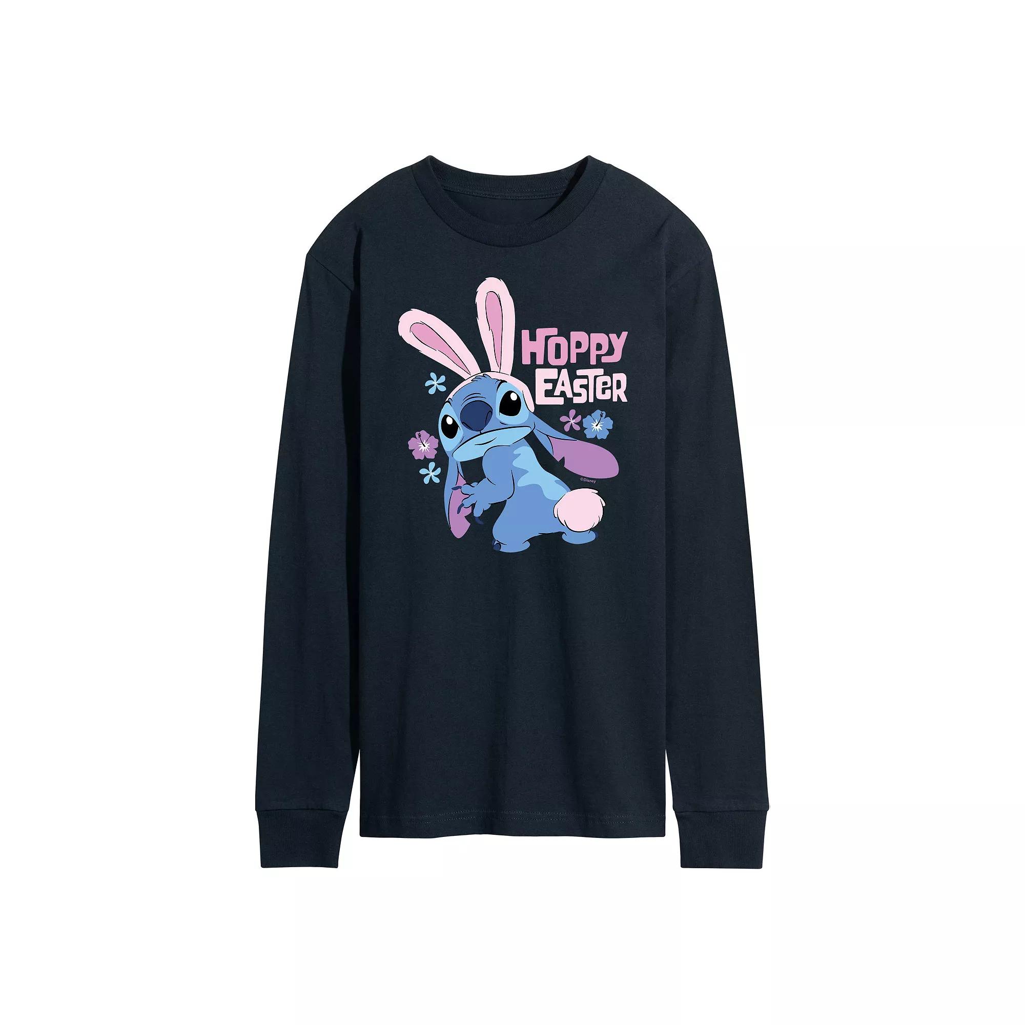 Add some playful charm to his casual Easter look with this Lilo & Stitch Mens Hoppy Easter Long Sleeve Graphic Tee. Disney FEATURES Crewneck Long sleeveFABRIC & CARE Solid colors: cotton; Heather colors: cotton, polyester Machine wash Imported Color: Black. Gender: male. Age Group: adult.