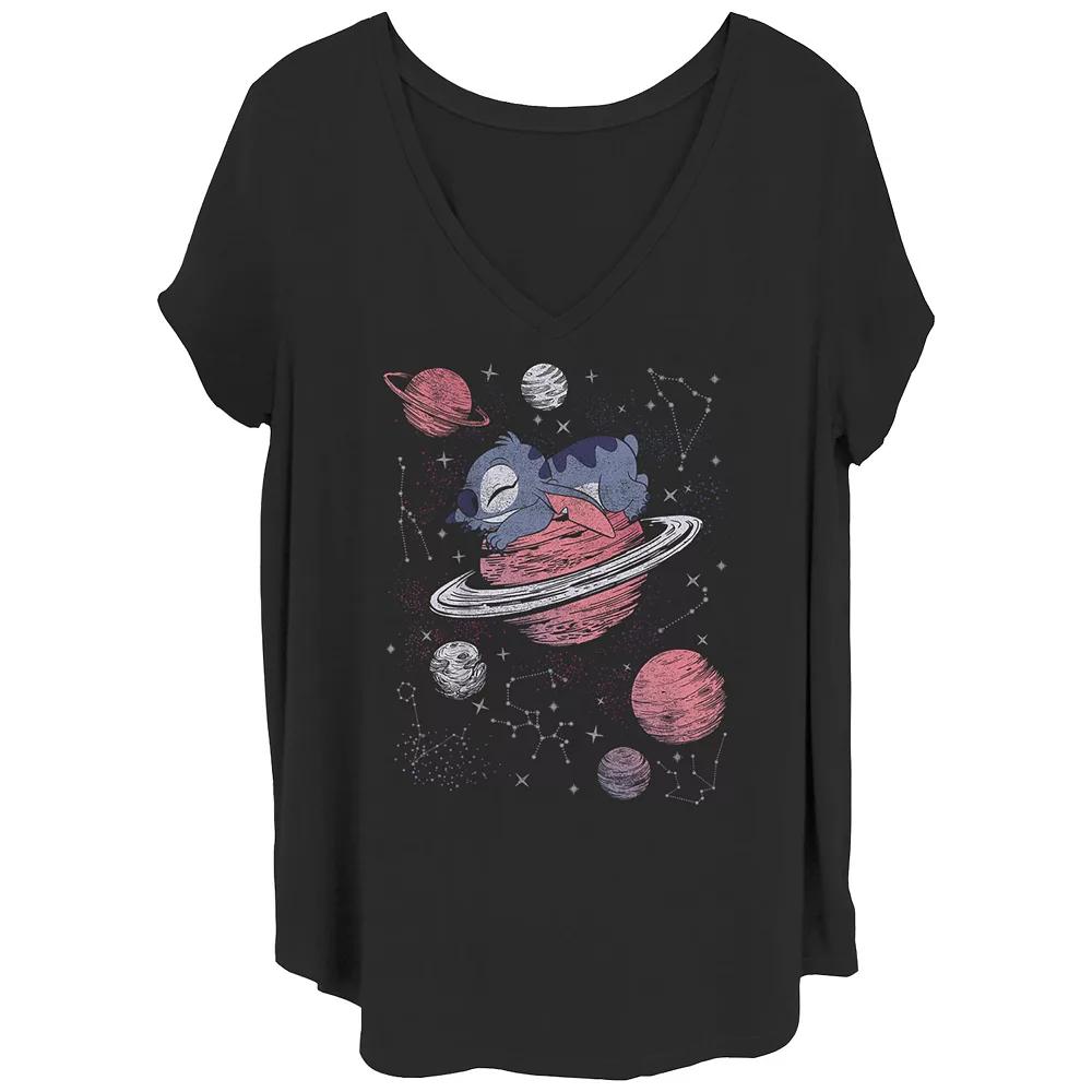 Shell love the look and feel of this Disneys Lilo & Stitch Saturn Snooze Juniors Plus Graphic Tee. Disney FEATURES V-neck Short SleevesFABRIC & CARE Cotton/Polyester Machine wash Imported Size: 2X. Color: Black. Gender: female. Age Group: adult.