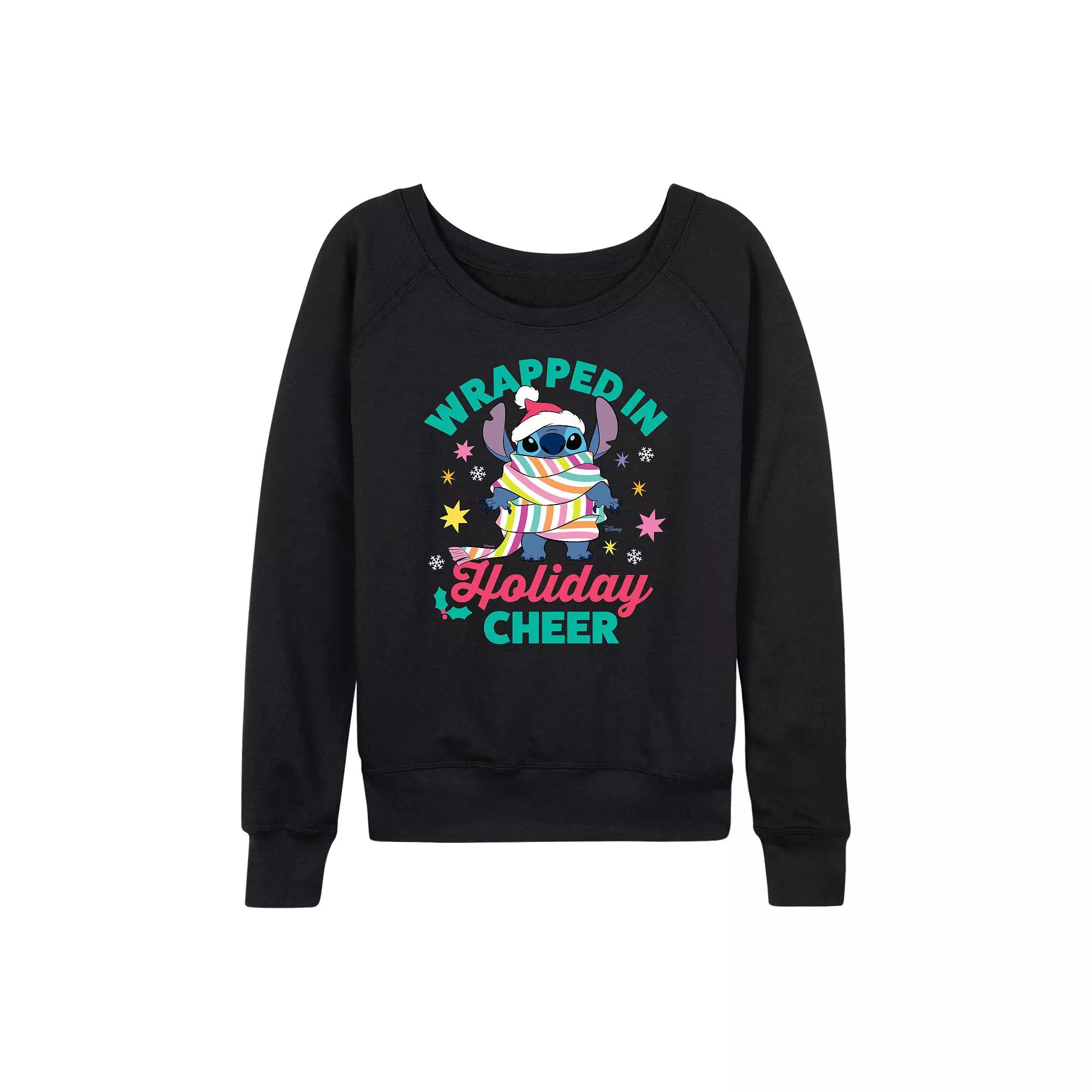 Disney's Lilo & Stitch Women's Holiday Cheer French Terry Long Sleeve Tee,