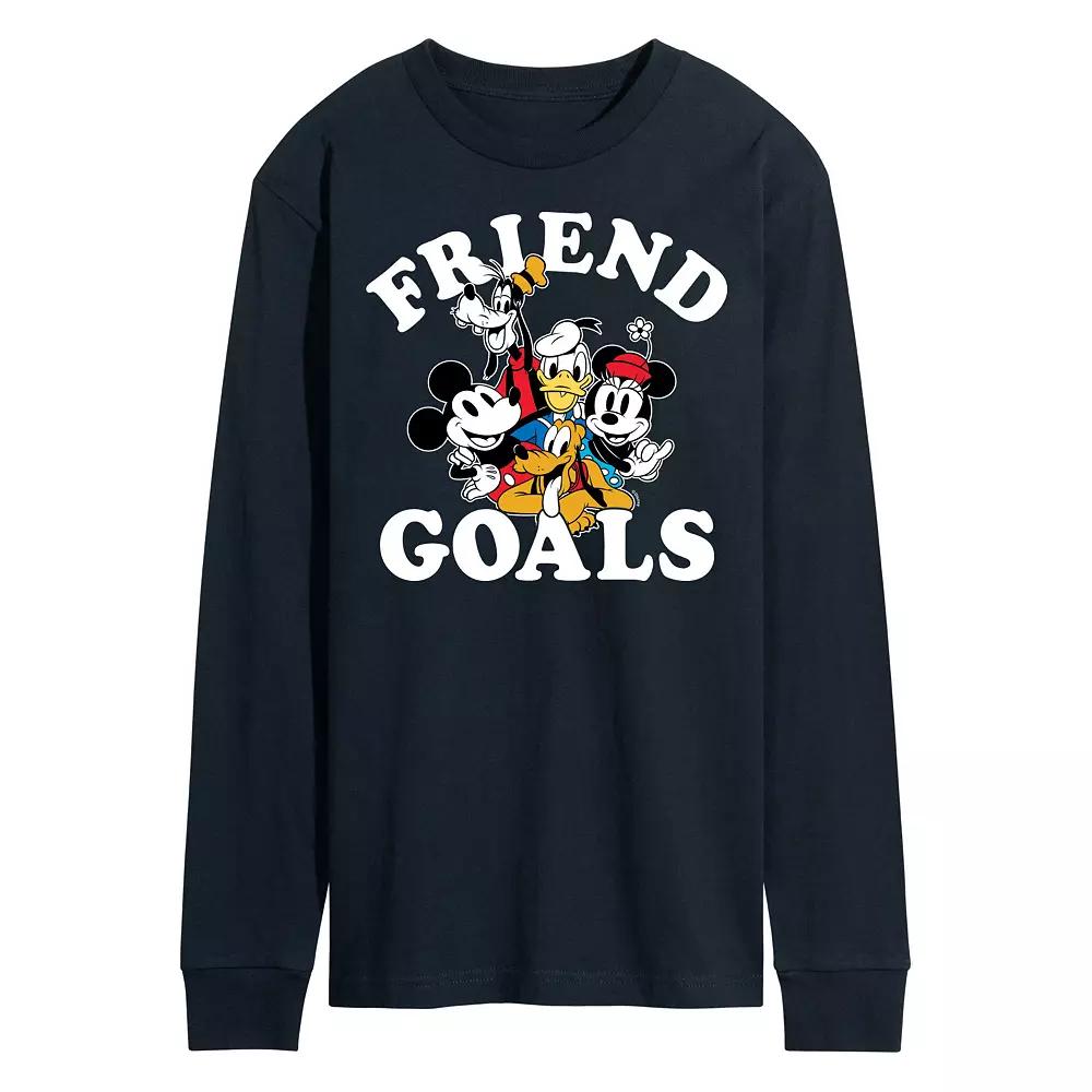 Add fun new style to your casual wardrobe with this Disneys Mens Friend Goals Long Sleeve Tee. Disney Add fun new style to your casual wardrobe with this Disneys Mens Friend Goals Long Sleeve Tee. Disney FEATURES Crewneck Long sleeveFABRIC & CARE Solid colors: cotton; Heather colors: cotton, polyester Machine wash Imported Color: Navy. Gender: male. Age Group: adult. Pattern: Graphic.