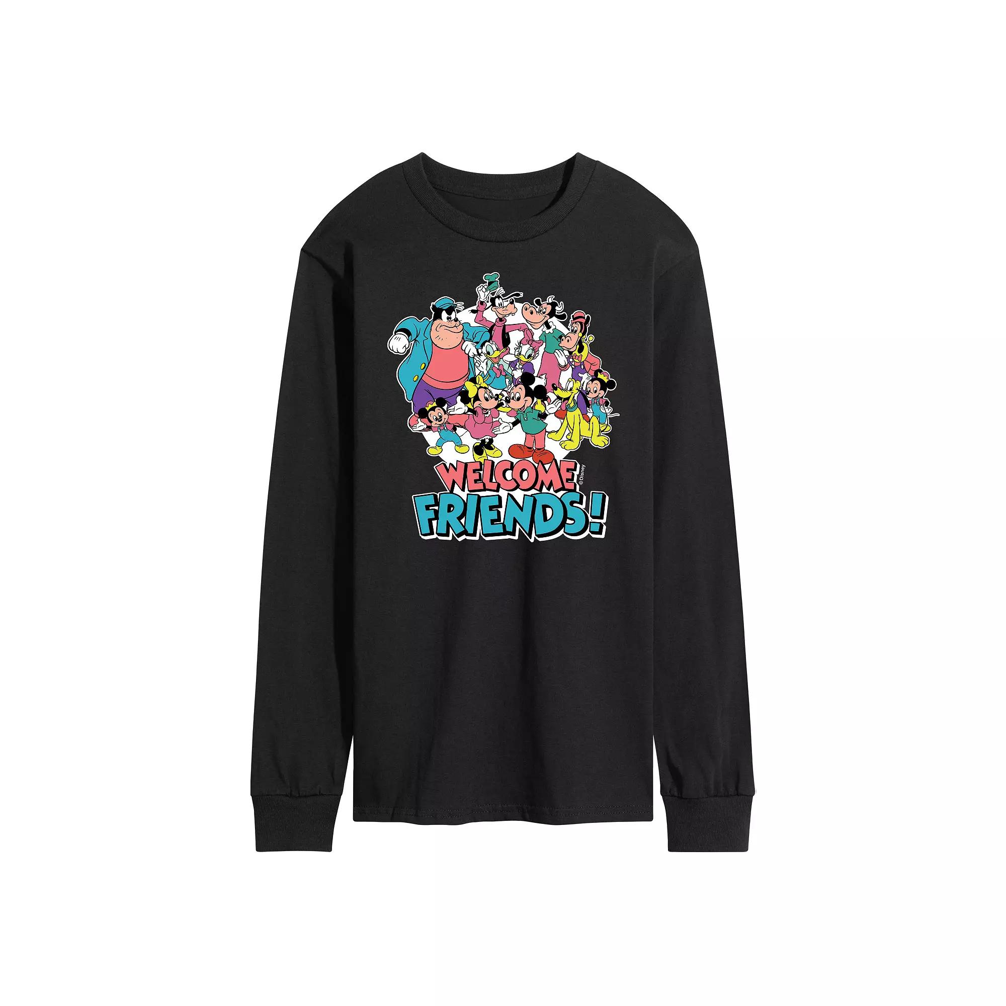 Add fun new style to your casual wardrobe with this Disneys Mens Welcome Friends Long Sleeve Tee. Disney Add fun new style to your casual wardrobe with this Disneys Mens Welcome Friends Long Sleeve Tee. Disney FEATURES Crewneck Long sleeveFABRIC & CARE Solid colors: cotton; Heather colors: cotton, polyester Machine wash Imported Size: XXL. Color: Black. Gender: male. Age Group: adult. Pattern: Graphic.