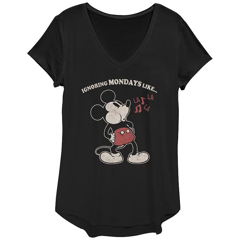 Shell love the look and feel of this Disneys Mickey Mouse Ignoring Mondays Like La La La Womens Graphic Tee. Disney FEATURES V-neck Short sleevesFABRIC & CARE Cotton, polyester Machine wash Imported Size: X Large. Color: Black. Gender: female. Age Group: adult.