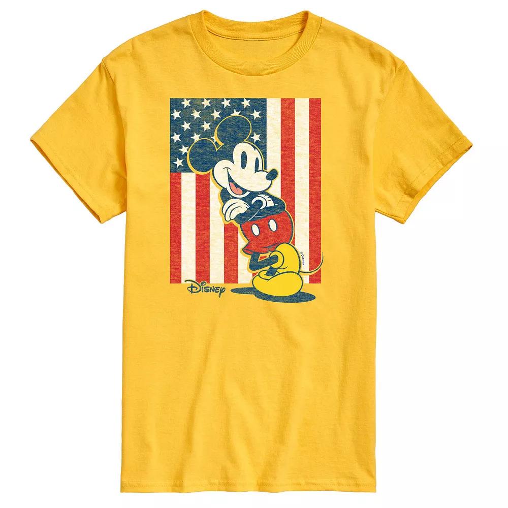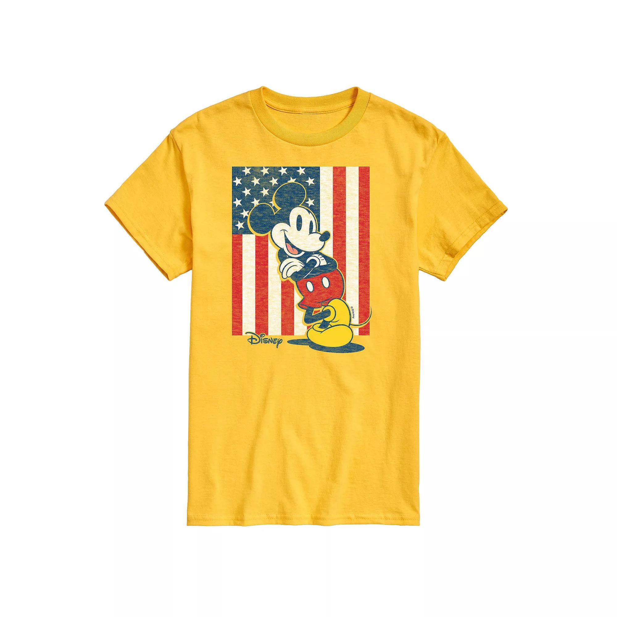 Dress with delightful style when you wear this Disneys Mickey Mouse Mens Americana Flag Graphic Tee. Disney Dress with delightful style when you wear this Disneys Mickey Mouse Mens Americana Flag Graphic Tee. Disney FEATURES Crewneck Short sleevesFABRIC & CARE Solid colors: cotton, Heather: cotton, polyester Machine wash Imported Size: XXL. Color: Yellow. Gender: male. Age Group: adult.