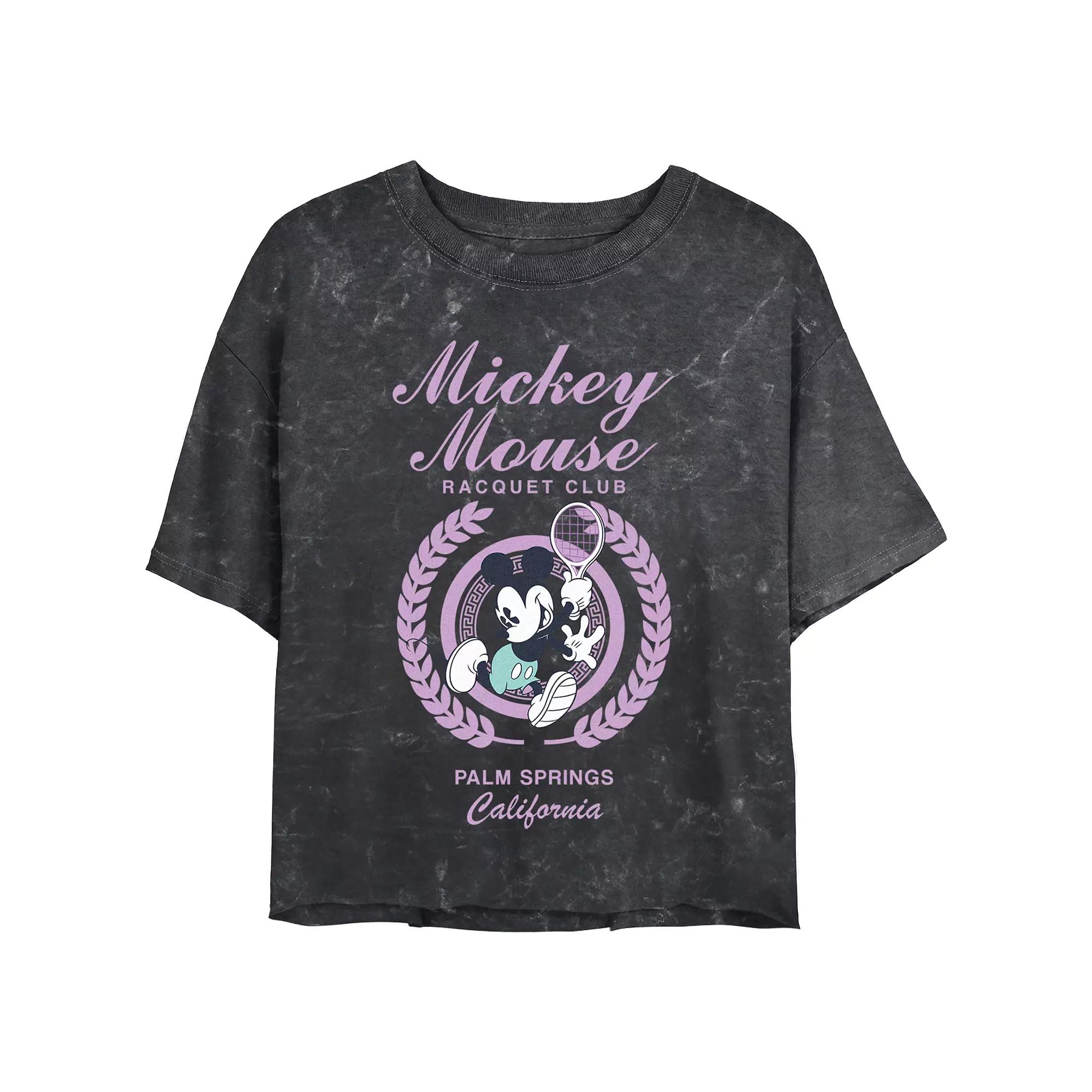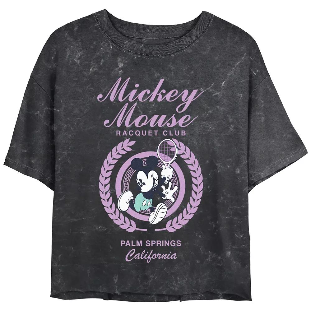 Shell love the look and feel of this Disneys Mickey Mouse Racquet Club Mineral Wash Juniors Cropped Graphic Tee. Disney FEATURES Crewneck Short SleevesFABRIC & CARE Cotton Machine wash Imported Size: Xxl. Color: Black. Gender: female. Age Group: adult.
