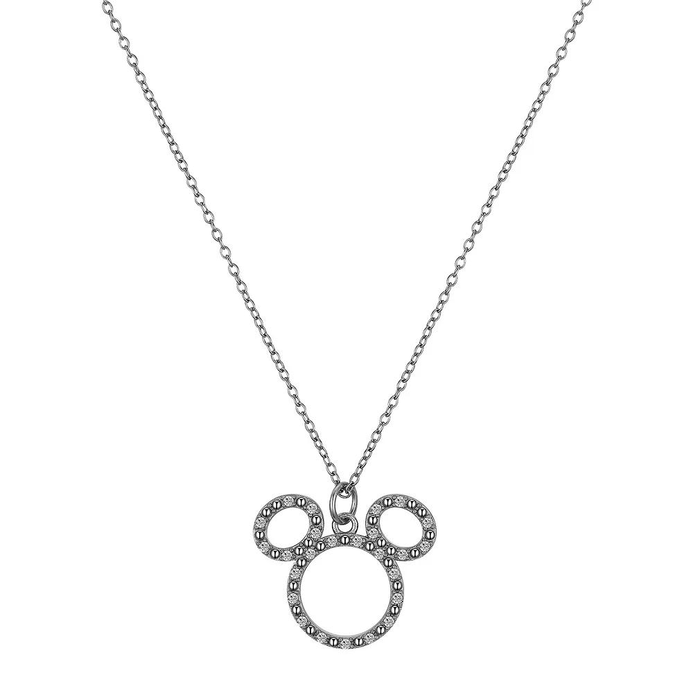 Give your accessories collection a refresh with this cubic zirconia-studded Timeless sterling silver Mickey Mouse pendant necklace. Disney Click on this JEWELRY & WATCHES GUIDE to learn about fit, styles, materials and more! Give your accessories collection a refresh with this cubic zirconia-studded Timeless sterling silver Mickey Mouse pendant necklace. Disney Click on this JEWELRY & WATCHES GUIDE to learn about fit, styles, materials and more! FEATURES Pendant dimensions: 0.78 in. x 0.83 in. Chain length: 18 in. Chain type: box Clasp: spring-ring Nickel free Metal: sterling silver Finish: polished Packaging: boxed ImportedSTONE DETAILS Stone type: cubic zirconia Shape: round Setting: pave Gemstones may have been treated to enhance their appearance. Special care may be required. Please visit our Gemstone Treatment & Special Care Guide for more information. Size: 18. Color: Silver Tone. Gender: female. Age Group: adult.