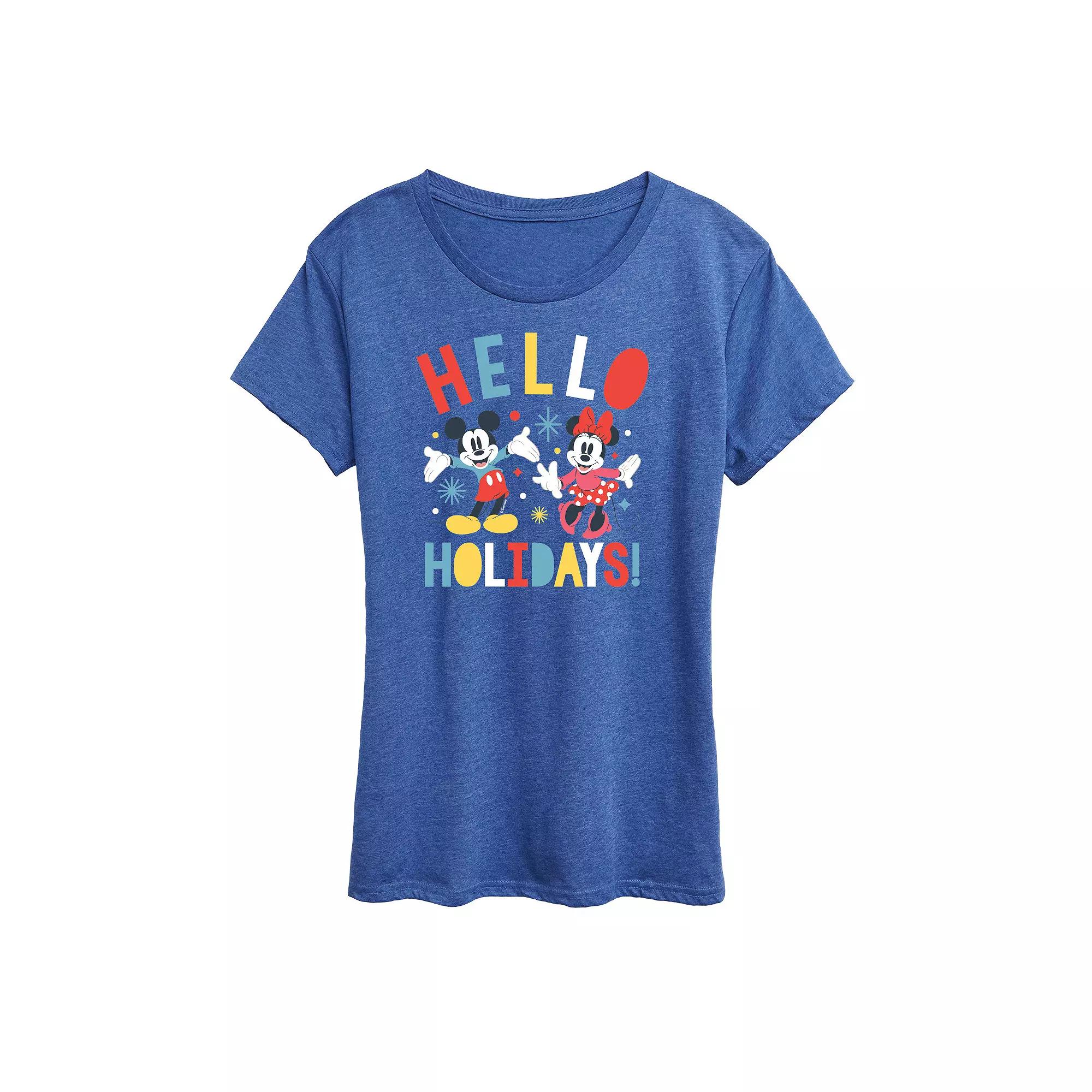 Dress yourself in fun holiday style with this Disneys Mickey Mouse Womens Mickey Minnie Hello Holidays Graphic Tee. Disney FEATURES Short sleeves CrewneckFABRIC & CARE Solid: cotton; Heather: cotton, polyester Machine wash Imported Size: Xxl. Color: Heather Royal Blue. Gender: female. Age Group: kids.