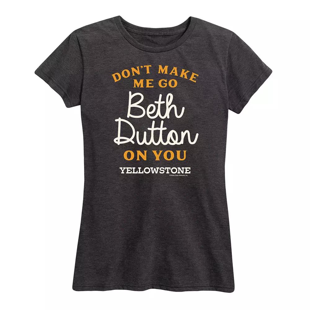 She will love showing off her style with this Womens Yellowstone Go Beth Dutton Graphic Tee. FEATURES Short sleeves CrewneckFABRIC & CARE Solid Color: Cotton ; Heather Colors: Cotton/Polyester Machine wash Imported Size: Medium. Color: Black. Gender: female. Age Group: adult.