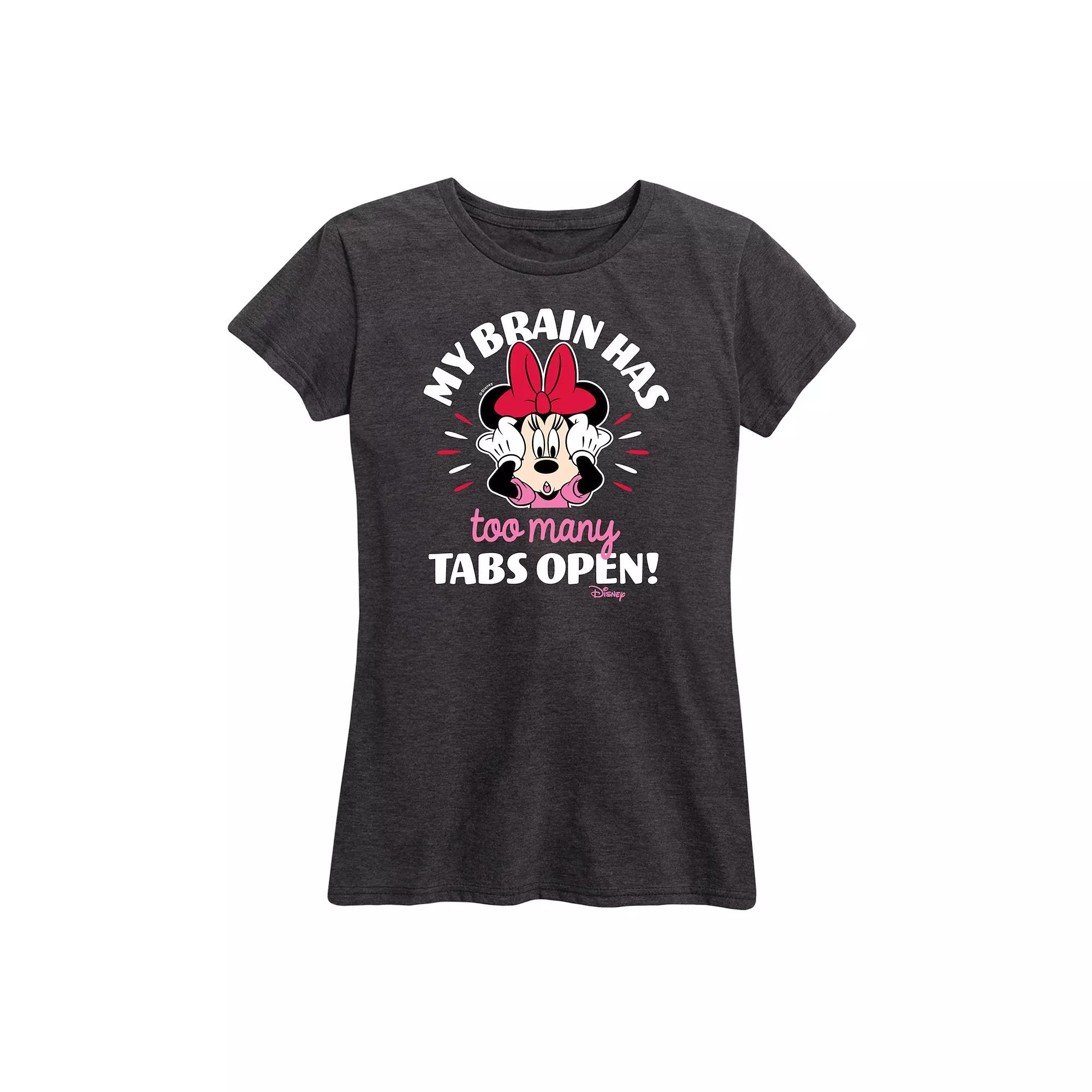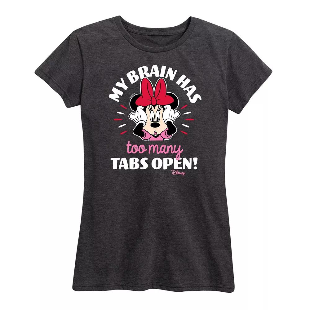 She will love showing off her style with this Disneys Minnie Mouse My Brain Too Many Tabs Graphic Tee. Disney FEATURES Short sleeves CrewneckFABRIC & CARE Solid Color: Cotton ; Heather Colors: Cotton/Polyester Machine wash Imported Size: Large. Color: Heather Charcoal. Gender: female. Age Group: adult.