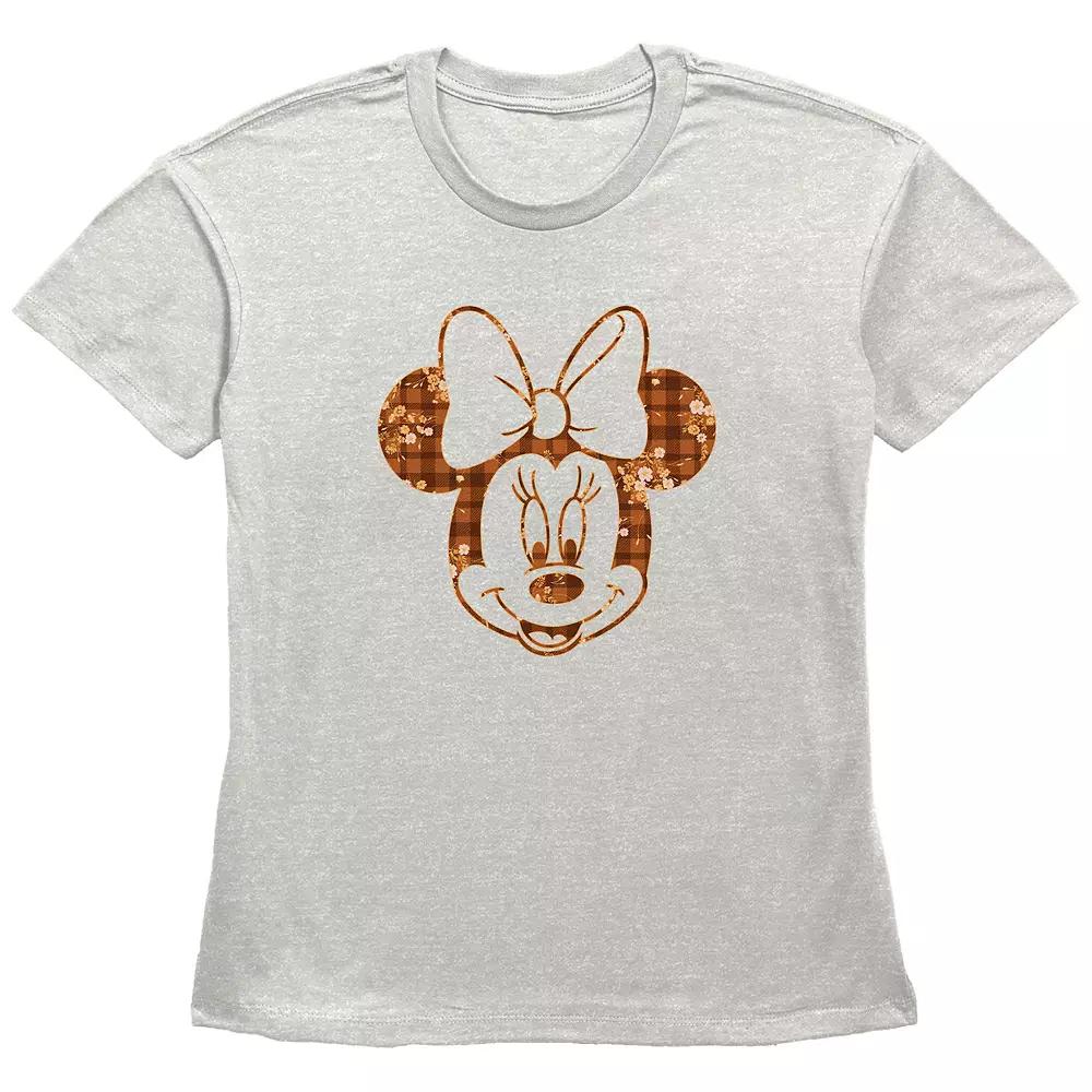 Give your wardrobe a festive Fall refresh with this Disneys Minnie Mouse Plaid Floral Print Womens Graphic Tee. Disney FEATURES Crewneck Short sleevesFABRIC & CARE Cotton, polyester Machine wash Imported Size: Small. Color: Oatmeal. Gender: female. Age Group: adult.