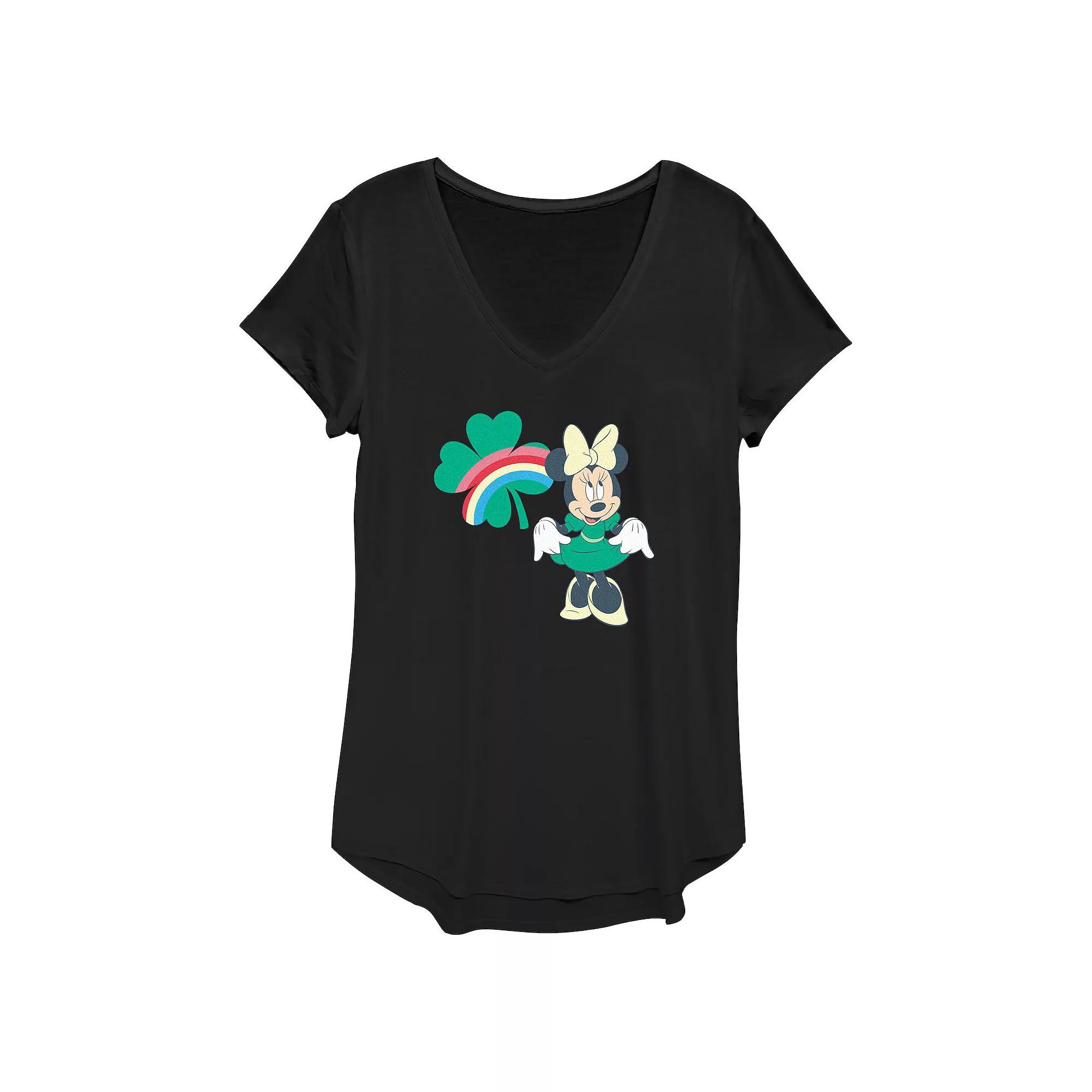 She'll love celebrating St. Patrick's Day in this Disney's Minnie Mouse Rainbow Print Shamrock Women's Graphic Tee. © DisneyFEATURES V-neck Short sleevesFABRIC & CARE Polyester, rayon, spandex Machine wash Imported Size: X Large. Color: Black. Gender: female. Age Group: adult.