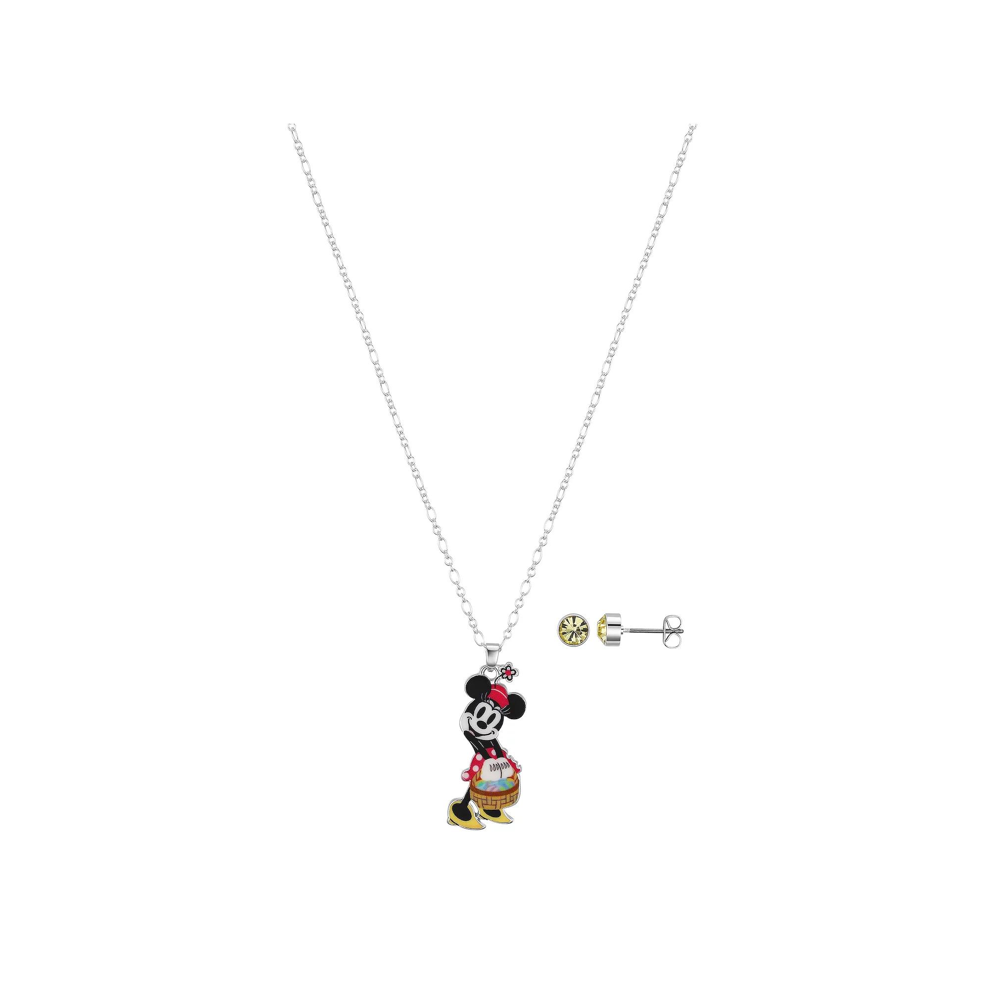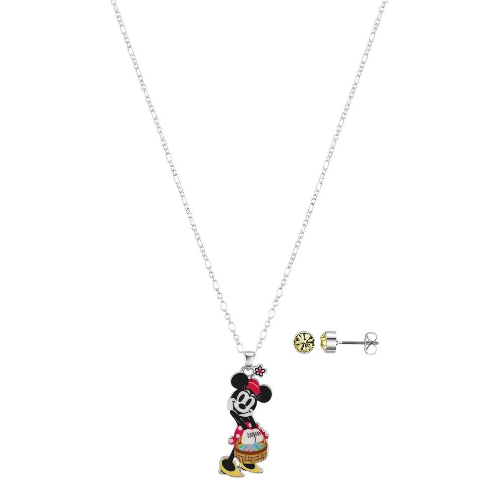 This adorable Minnie Mouse silver tone crystal Easter basket pendant necklace and stud earrings set is amazing for any Disney fan's jewelry collection. © Disney Click on this JEWELRY & WATCHES GUIDE to learn about fit, styles, materials and more! This adorable Minnie Mouse silver tone crystal Easter basket pendant necklace and stud earrings set is amazing for any Disney fan's jewelry collection. © Disney Click on this JEWELRY & WATCHES GUIDE to learn about fit, styles, materials and more! FEATURES Includes: one pendant necklace and one pair of stud earrings Pendant size: 32.4 mm Chain length: 16-18" adjustable Clasp: lobster-claw Earring size: 6 mm Earring backings: post Nickel free Metal: alloy Plating: silver tone Finish: polished Packaging: decorative card Imported Not appropriate for children 14 years old and younger. Size: One Size. Color: Multi None. Gender: female. Age Group: adult.