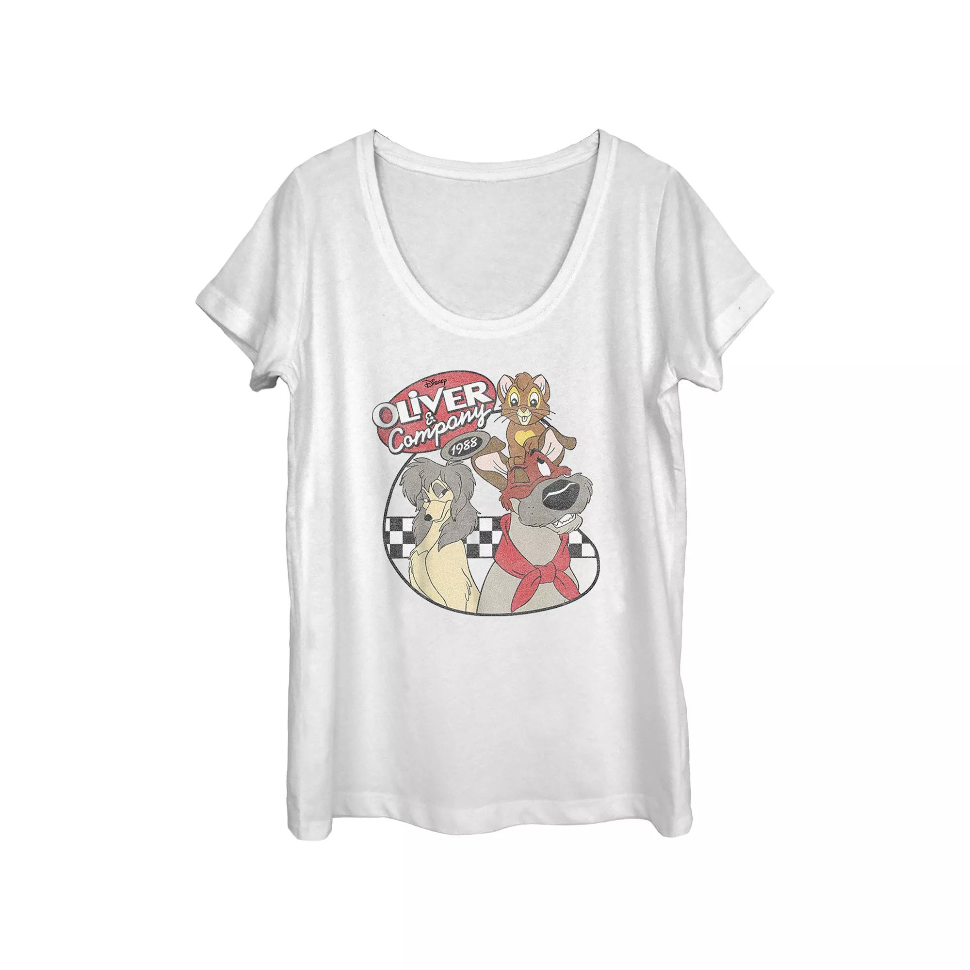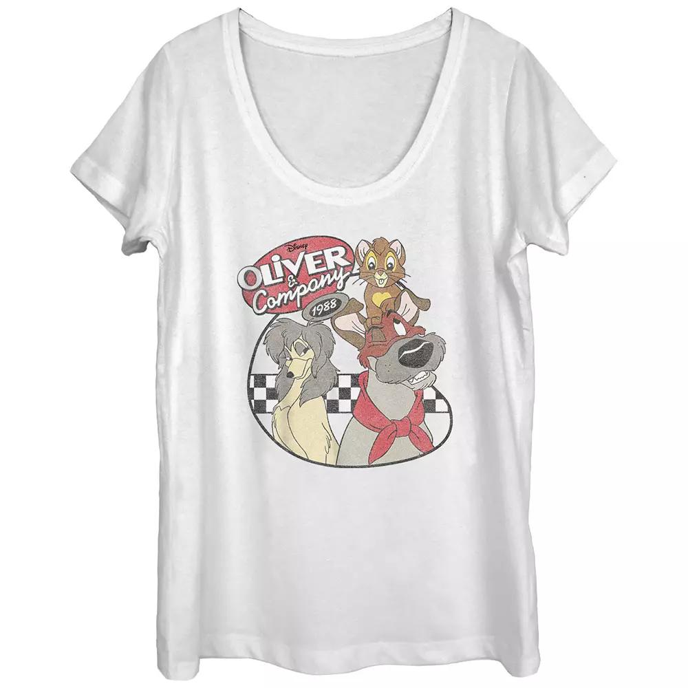 Shell love the look and feel of this Disneys Oliver And Company Vintage Movie Poster Scoop Neck Juniors Graphic Tee. Disney FEATURES Scoopneck Short SleevesFABRIC & CARE Cotton Machine wash Imported Size: Xxl. Color: White. Gender: female. Age Group: adult.