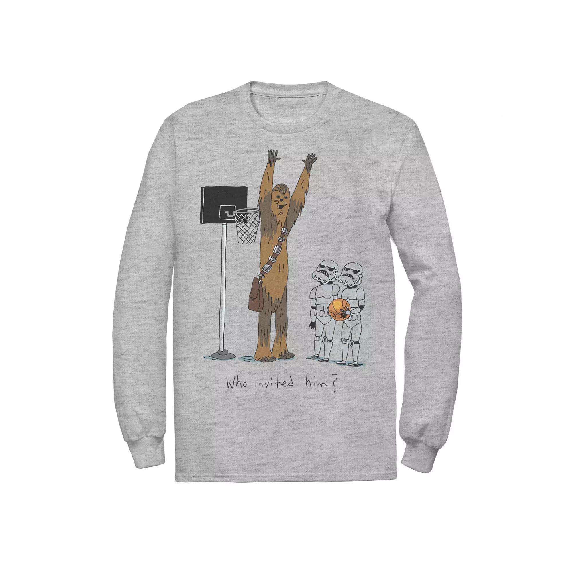 Revamp his wardrobe with this Disneys Star Wars Mens Chewbacca Basketball Who Invited Him Long Sleeve Tee. Disney Revamp his wardrobe with this Disneys Star Wars Mens Chewbacca Basketball Who Invited Him Long Sleeve Tee. Disney FEATURES Crewneck Long sleeveFIT & SIZING Classic fitFABRIC & CARE Cotton, polyester Machine wash Imported Size: 3XL Tall. Color: Med Grey. Gender: male. Age Group: adult.