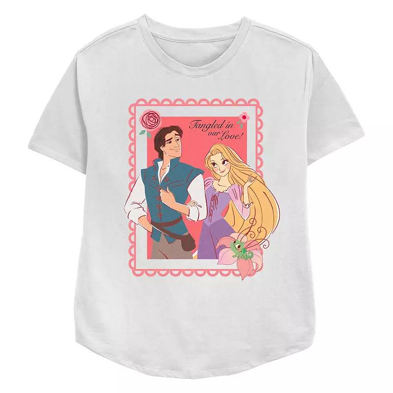 Show your love on Valentine's Day with this Disney's Tangled Flynn And Rapunzel Tangled In Love Women's Relaxed Fit Graphic Tee. © DisneyFEATURES Crewneck Short sleevesFABRIC & CARE Cotton, polyester Machine wash Imported Size: Medium. Color: White. Gender: female. Age Group: adult.
