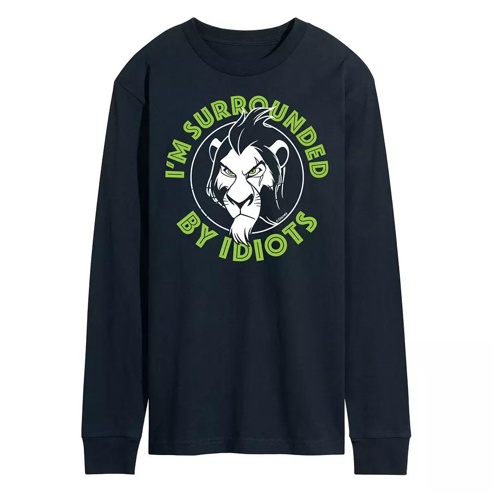 He will love showing off his style with this Disneys The Lion King Scar Mens Surrounded By Idiots Long Sleeve Graphic Tee. Disney FEATURES Crewneck Long sleeveFABRIC & CARE Solid Color: Cotton ; Heather Colors: Cotton/Polyester Machine wash Imported Color: Black. Gender: male. Age Group: adult.