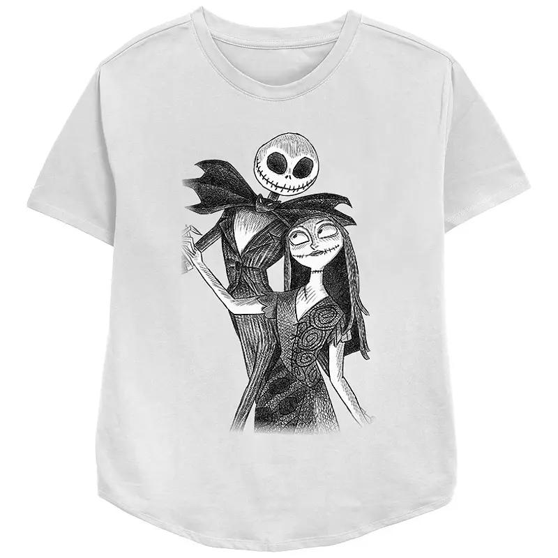 Disney's The Nightmare Before Christmas Juniors' Jack And Sally Draw Relaxed Fit Graphic Tee, Women's,