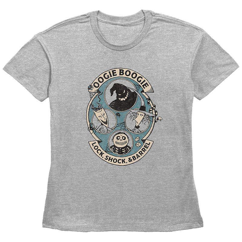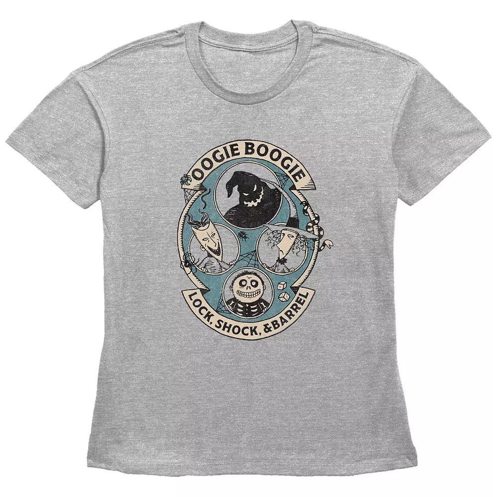 Shell love getting into the spooky spirit of the season with this Disneys The Nightmare Before Christmas Oogie Boogie Lock, Shock, & Barrel Womens Graphic Tee. Disney FEATURES Crewneck Short sleevesFABRIC & CARE Cotton, polyester Machine wash Imported Size: Medium. Color: Heather Gray. Gender: female. Age Group: adult.