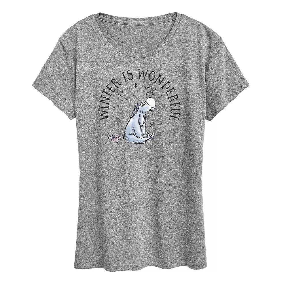 She will love showing off her style with this Disneys Winnie The Pooh Eeyore Womens Winter Graphic Tee. Disney based on the Winnie the Pooh works by A.A. Milne and E.H. Shepard FEATURES Short sleeves CrewneckFABRIC & CARE Solid Color: Cotton ; Heather Colors: Cotton/Polyester Machine wash Imported Size: Xxl. Color: Heather Gray. Gender: female. Age Group: kids.